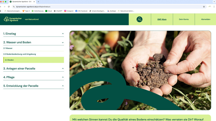Der Kurs zum Dynamischen Agroforst vermittelt fundiertes Wissen und praxisnahe Anleitung, um Schritt für Schritt gesunde, produktive Pflanzensysteme aufzubauen. In anschaulichen Videos und praxisorientierten Anleitungen lernen Sie, wie Bodenfruchtbarkeit, Biodiversität und Ertrag auf natürliche Weise wachsen.