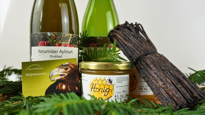 Zunächst schließen wir aber unseren Naturefund Adventskalender heute mit einem vielfältigen Gesamtpaket voller Naturefund Leckereien. Zu gewinnen gibt es Bio-Apfelsaft (DE-ÖKO-006) von den Äpfeln unserer Streuobstwiesen, den Honig unserer Bienen, Vanilleschoten aus unserem Projekt auf Madagaskar und das Highlight schlechthin: eine Jahresmitgliedschaft bei Naturefund! Mit der Mitgliedschaft unterstützen Sie unsere Arbeit für ein Jahr mit 5 Euro pro Monat.