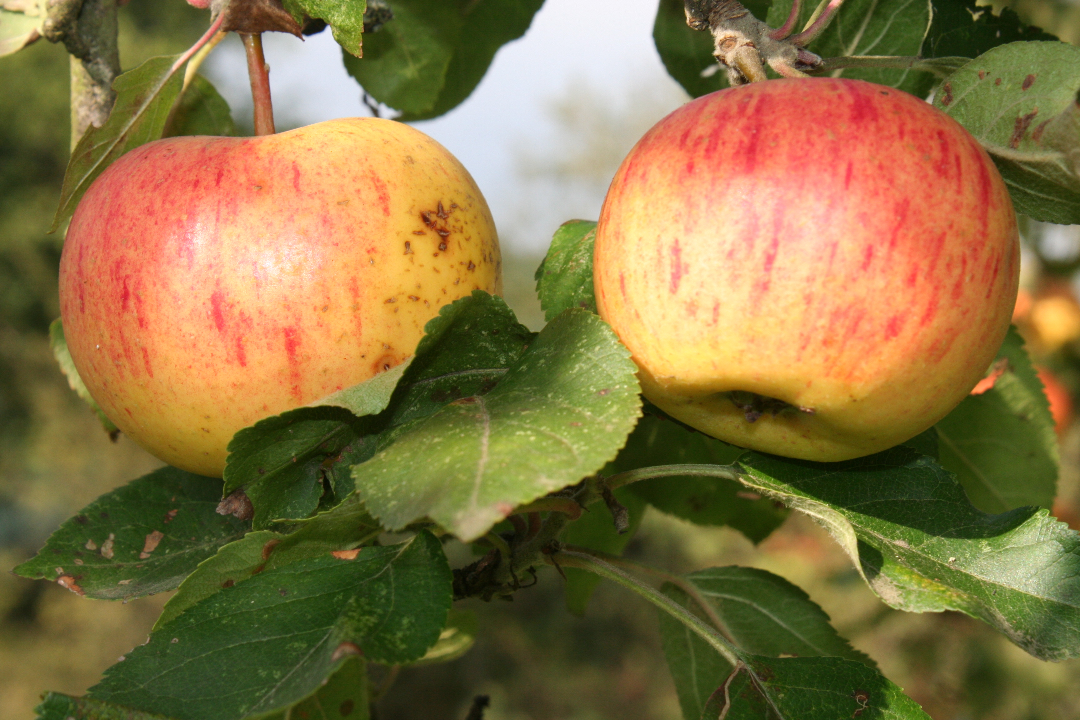 • Aussehen: Rotgereift und leicht gelb, rundlich
