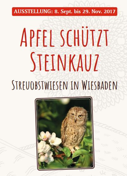 Der Umweltladen zeigt mit der neuen Ausstellung "Apfel schützt Steinkauz – Streuobstwiesen in Wiesbaden" die für die Streuobstwiesen typischen Tier- und Pflanzenarten, lokale Apfelsorten und die Wege der Vermarktung. Poster, Schautafeln und Ausstellungsexponate veranschaulichen, warum die für Wiesbaden typischen Obstwiesen besonders schützenswert sind.
