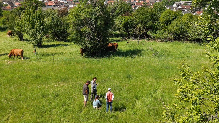 Graslandschaften sind weit mehr als blühende Wiesen. Auf den ersten Blick sehen wir bunte Blumen und ein paar Insekten – und nehmen an, dass die Natur hier in Ordnung ist. Doch der wahre Zustand dieser Flächen zeigt sich erst bei genauerem Hinsehen: im Boden und in seinem Zusammenspiel mit Pflanzen, Tieren und dem Wasserhaushalt. Auch in diesem Jahr haben wir Daten auf den Wiesen gesammelt, die wir mit unseren Rindern nach dem natürlichen Weideverhalten großer Herden ganzheitlich beweiden. Die Ergebnisse sind eindeutig: Die Werte für die Gesundheit des Boden und der Gräser sowie die Artenvielfalt haben sich um 300 % verbessert - in nur vier Jahren!