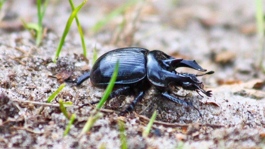 Der schwarz glänzende 14 bis 20 Millimeter große Stierkäfer ist mit seinem "Geweih" ein echter Hingucker. Dieses besteht aus drei "Hörnern" von denen die beiden längeren äußeren nach vorne gerichtet sind – der Grund für die Namensgebung. Die Hörner setzen die kleinen Insekten beim Kampf mit Rivalen oder zum Schutz von Nistplätzen ein. Der Käfer ernährt sich vom Kot pflanzenfressender Tiere und besetzt damit eine Schlüsselrolle in Ökosystemen. Die Mistkäferart kann mehr als das 1000-fache ihres eigenen Körpergewichts ziehen! Dies nutzen die Käfer, um Kot beispielsweise von Kaninchen, Rehen, Rindern und Schafen in Form einer Kugel als Nahrung für ihren Nachwuchs zu sammeln. Doch eine ansteigende Stallhaltung von Weidetieren und der zunehmende Einsatz von Arzneimitteln bei diesen sorgt laut Senckenberg-Institut für einen erheblichen Rückgang des Bestands in den letzten Jahrzehnten. Zwar gilt der Stierkäfer in Deutschland derzeit noch nicht gefährdet, doch ein weiteres Problem macht ihm zu schaffen: Sein Lebensraum von sandigen Heiden und lichten Kieferwäldern schrumpft.