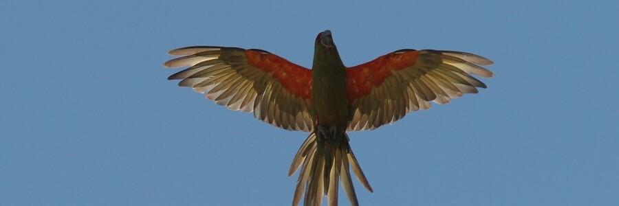 Der Rotohr-Ara läßt sich allerdings noch etwas Zeit damit, denn noch immer befinden sich die meisten Vögel in ihren Überwinterungsgebieten. Dort ernähren sie sich auf von Hand abgeernteten Maisfeldern von den Kolben, die die Bauern übersehen haben. Wir konnten dabei Schwärme von über 100 laut kreischenden Rotohr-Aras auf einem einzigen Feld beobachten. Im Vergleich zu den riesigen Staarenschwärmen in Deutschland mag das vielleicht nicht sonderlich beeindruckend klingen, aber für uns, die wir wissen, dass es vom Rotohr-Ara nur noch knapp 1.000 Tiere in freier Wildbahn gibt, ist das beeindruckend.