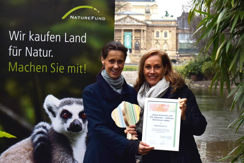 Für die Naturschutzorganisation nehmen Vorstand Katja Wiese und Botschafterin Sabine Bach die Urkunde und einen „Vielfalt-Baum“ entgegen, der symbolisch für die bunte Vielfalt und einzigartige Schönheit der Natur steht. Die Auszeichnung findet im Rahmen der Aktivitäten zur UN-Dekade Biologische Vielfalt statt, die von den Vereinten Nationen für den Zeitraum von 2011 bis 2020 ausgerufen wurde.