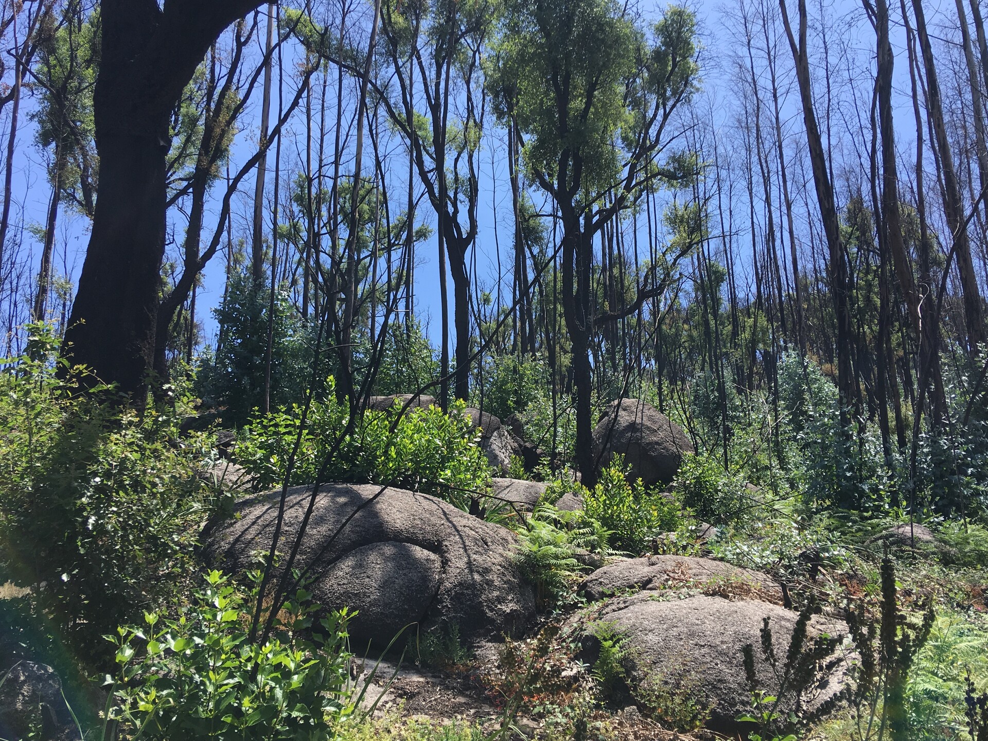 Zurück blieb eine Mondlandschaft. Heute, fast ein Jahr später, ist vieles wieder grün und die Natur erholt sich langsam. Mirka und Carlos pflanzen viele neue Baumsetzlinge und werden dabei von Naturefund und EURid unterstützt, die verbrannten Hänge wiederaufzuforsten.
