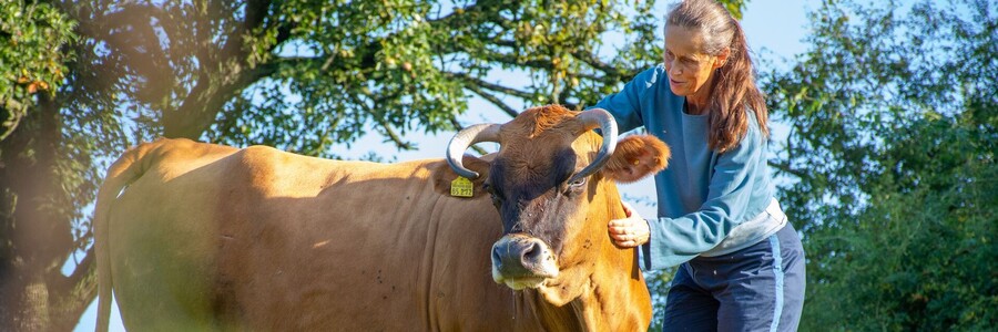 Kleine Schritte machen, das ist gerade das Zauberwerkzeug, das ich kennenlerne. Rinder sind so fein in der Wahrnehmung. Kleine Schritte reichen oft, um zu erspüren, wie die Kuh meine Bewegungen interpretiert. Wenn es mir gelingt, mit dem Tier im Kontakt zu sein und gemeinsam in eine Bewegung zu kommen, ist das ein wunderschöner, stiller Moment.