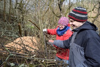 Als Nistmöglichkeit für Wildbienen entsteht eine Sandbank. mehr