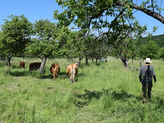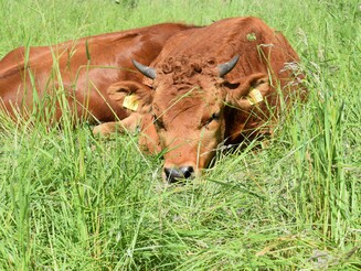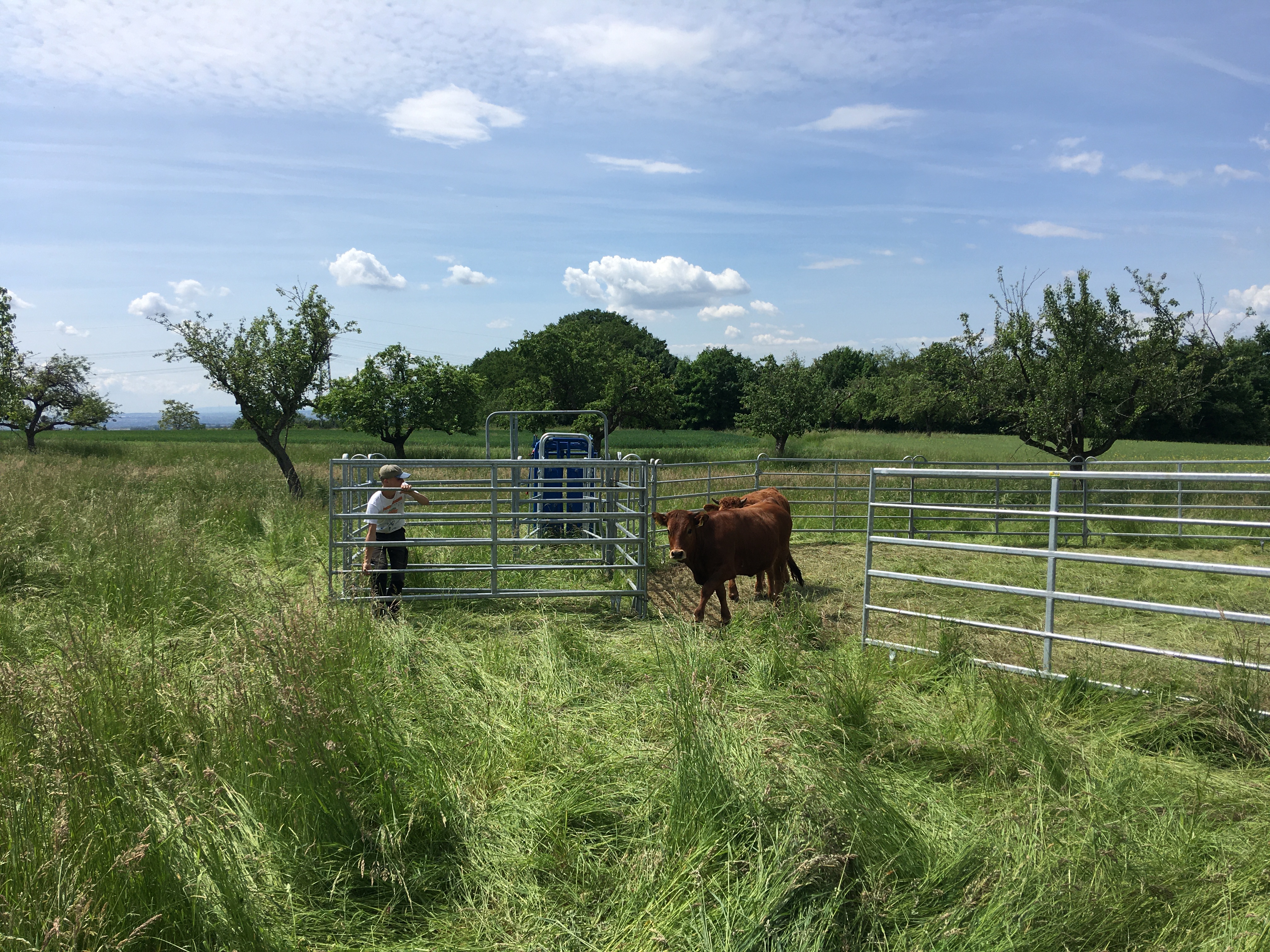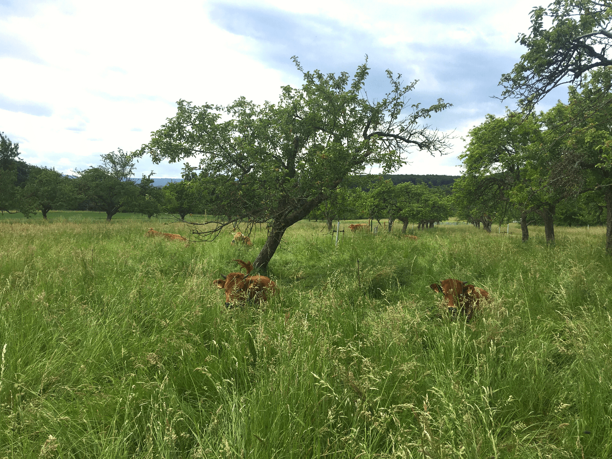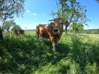 Die beiden Jungrinder Schalmei und Rose vergrößern fortan unsere Murnau-Werdenfelser Kuhherde in Wiesbaden. Auf Streuobstwiesen rund um Wiesbaden-Breckenheim grasen fortan nun sieben Kühe der bedrohten Rasse. Mehr zu unseren Kühen erfahren Sie hier.