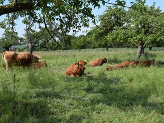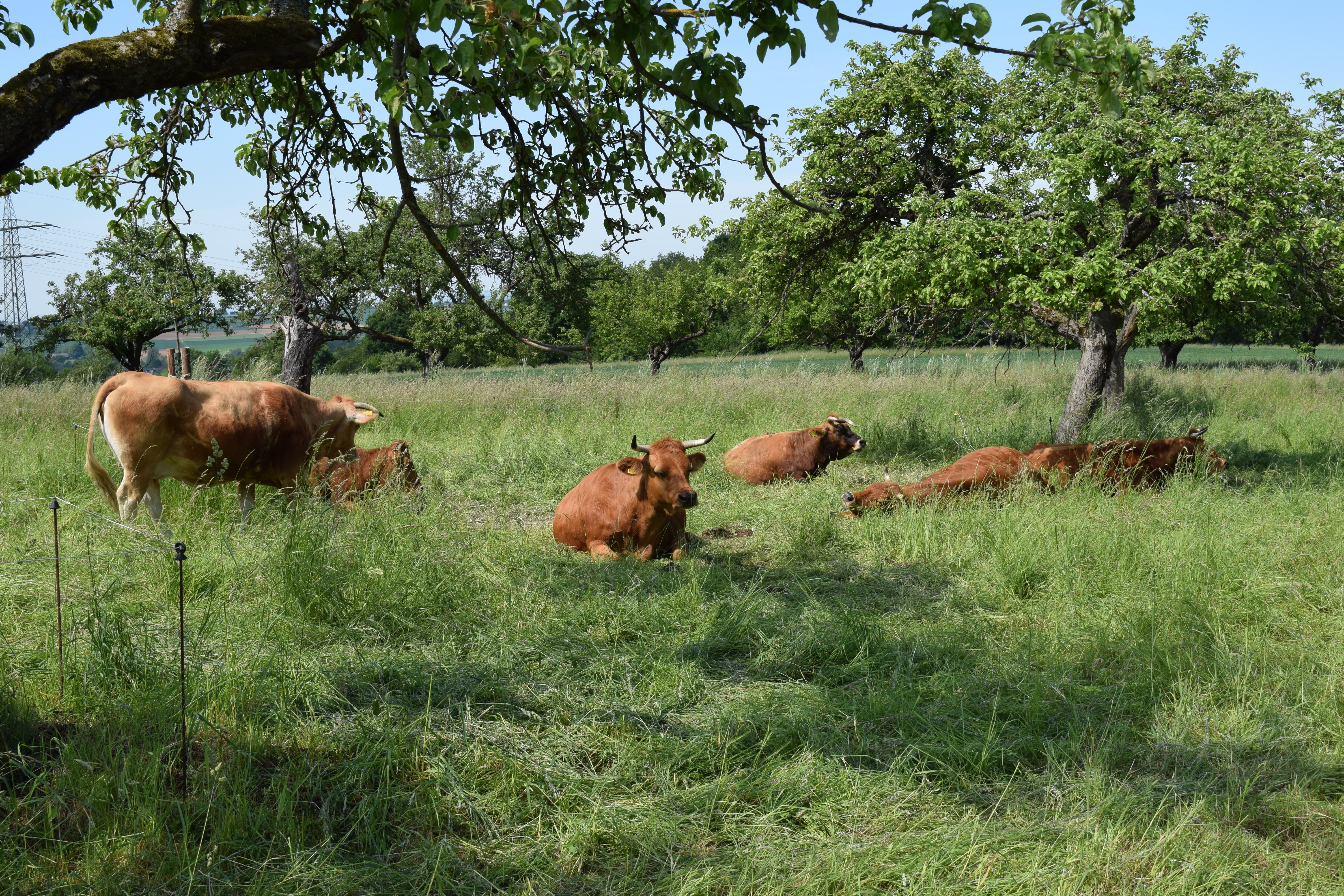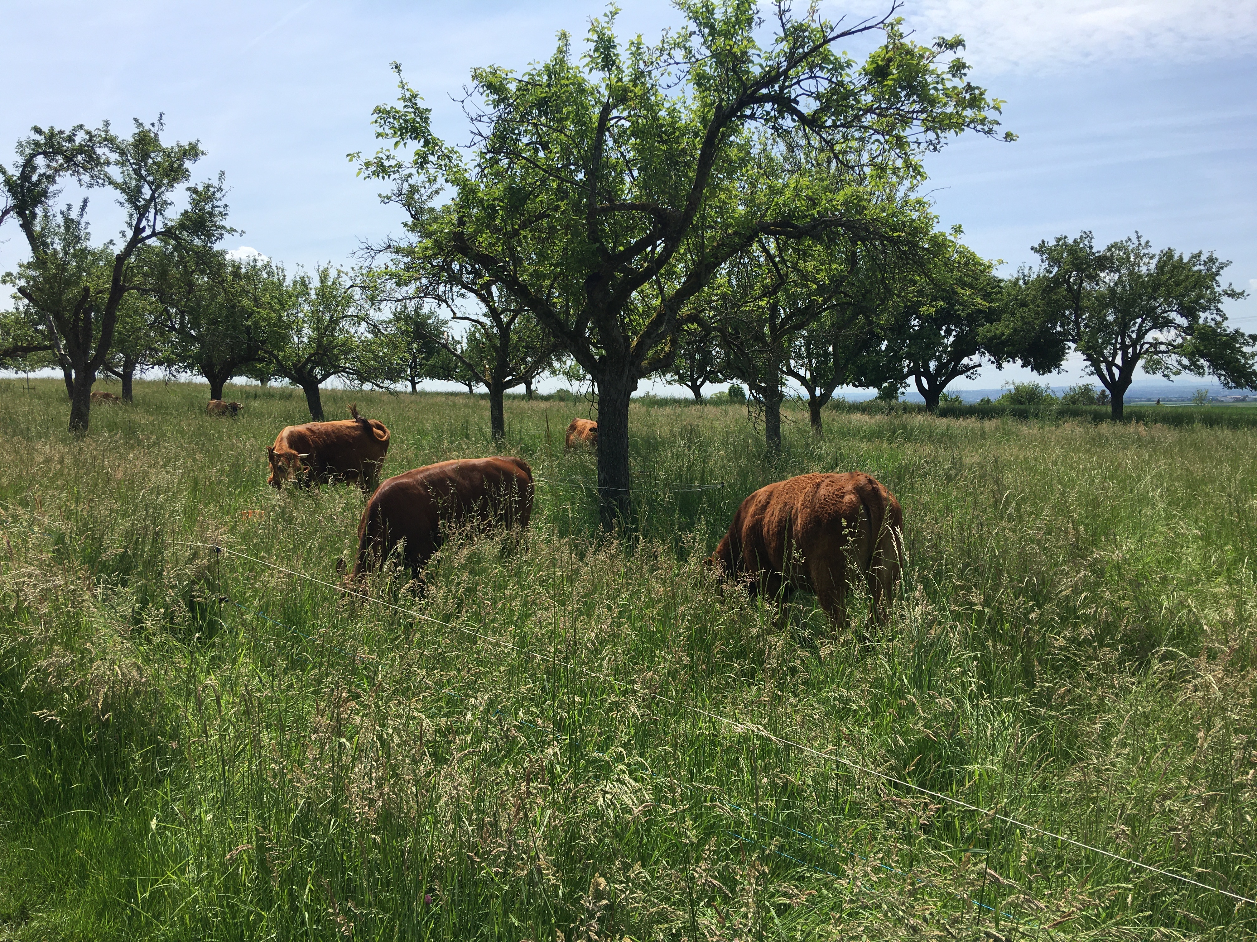 Die Streuobstwiesen in Wiesbaden-Breckenheim sind fortan das neue Zuhause der beiden Kühe