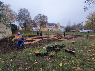 In diesem Jahr haben wir vier Pflanzaktionen geplant und gemeinsam mit dem Landkreis Mainz-Bingen und vielen Freiwilligen umgesetzt. Bepflanzt wurden dabei vier kommunale Flächen in Köngernheim, Trechtinghausen, Gau-Algesheim und Klein-Winternheim im Sinne des Dynamischen Agroforsts. Das Ziel: Die innovative Anbaumethode Bürgern und Landwirten näher bringen. So wurden an den vier Pflanzterminen unterschiedlichste Pflanzen und Saatgut in den Boden gebracht. Zwischen Bäumen wie beispielsweise Apfel-, Birnen- oder Haselnussbäumen und Sträuchern wie beispielsweise Jostabeeren oder schwarzen Johanissberen wachsen nun viele aromatische Kräuter wie Pilzkraut, Borretsch, Basilikum, Dill, Minze, Salbei oder Thymian. Die Hoffnung: Sowohl Insekten als auch Besucher sollen sich an dem neu wachsenden Nahrungsangebot gütlich tun. Naschen und probieren ist ausdrücklich erwünscht!