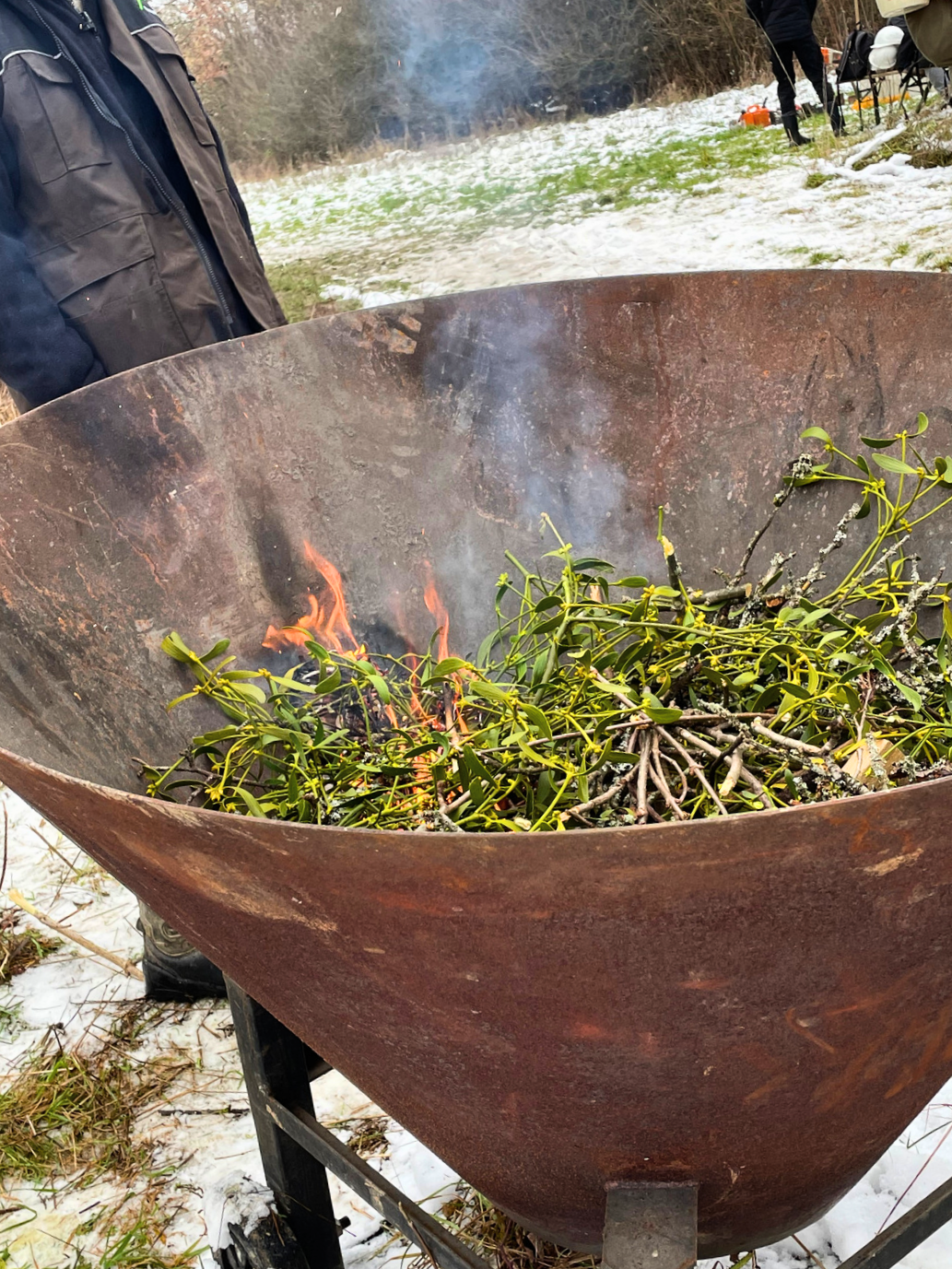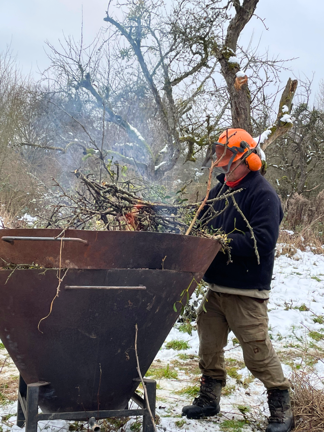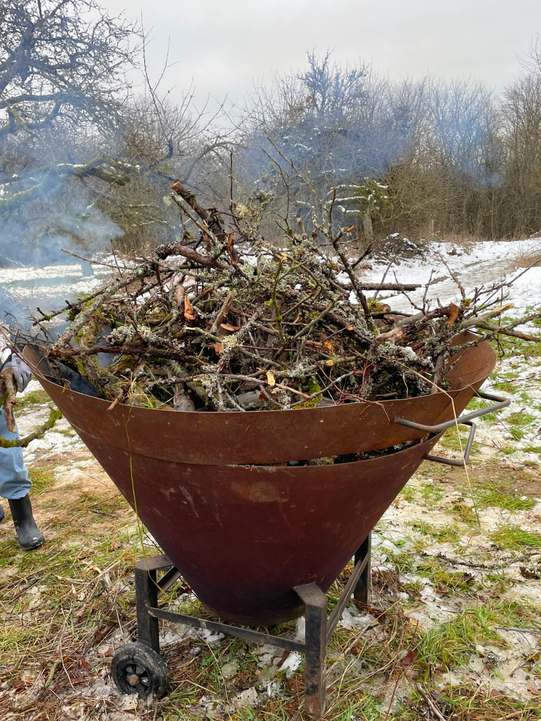 Auch bei tiefsten Temperaturen im Januar waren wir fleißig: Zusammen mit Wiesbadener Schulklassen befreiten wir die Streuobstwiesen nicht nur von Totholz, sondern nutzen das ganze auch zur Herstellung von Pflanzenkohle.