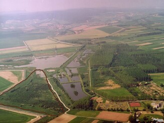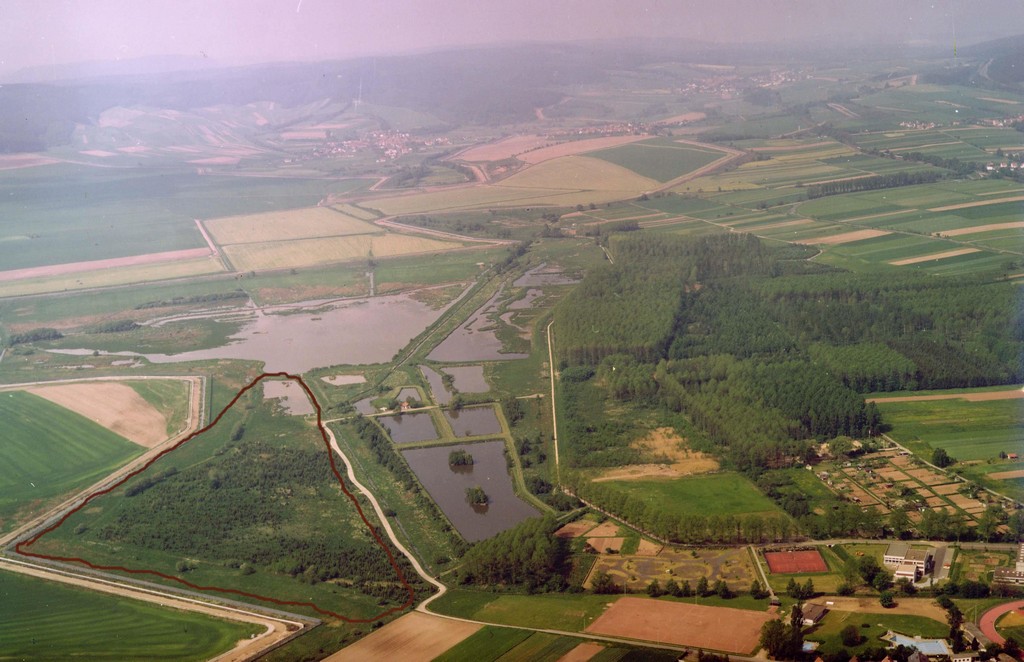 Teich und WaldLuftbildaufnahme vom SumpfwaldJunge Erlen im SumpfwaldGraben mit WaldFreier BlickLaubfroschJunge BäumeWasser überallWald im WandelFeuchtwiese im SommerRingelnatterGraureiher im Baum