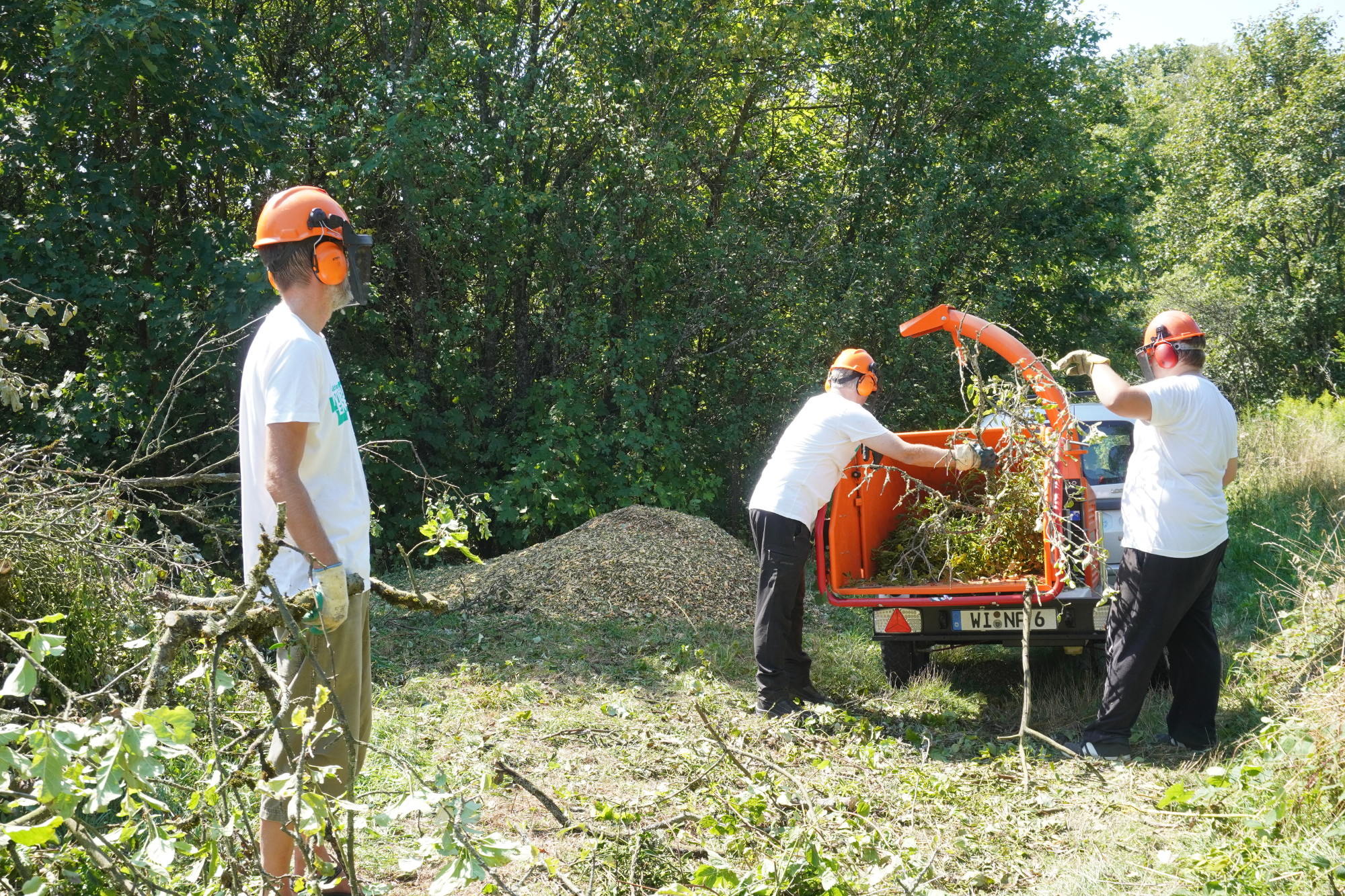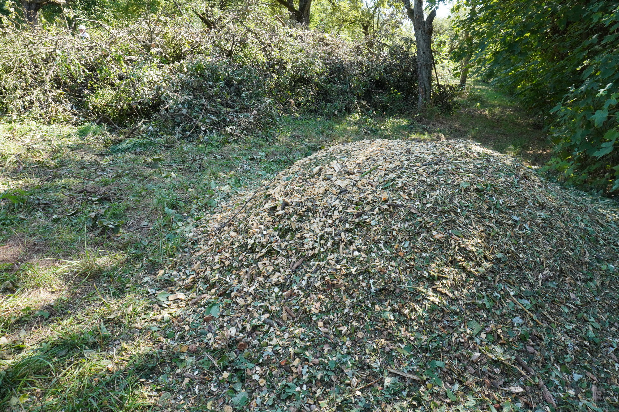 Schnittgut von Obstbäumen wird gehäckselt