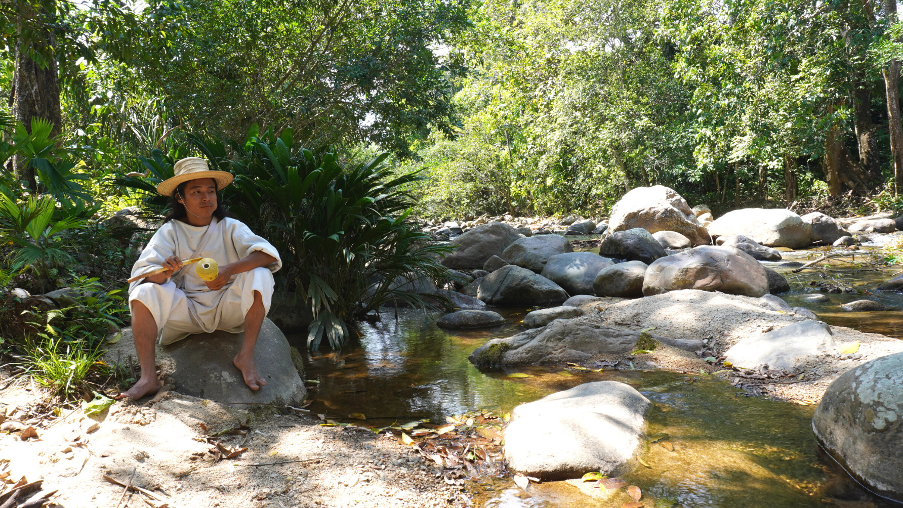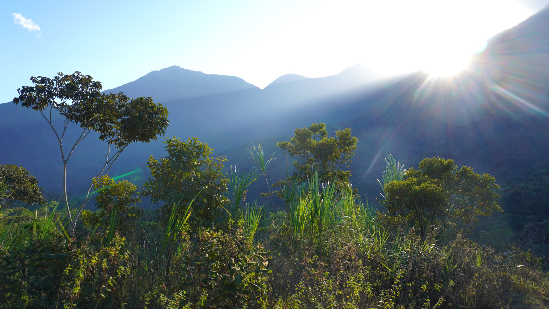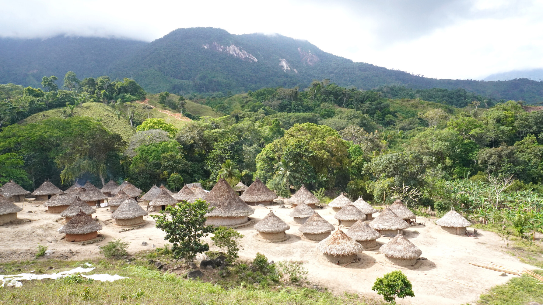 Panoramablick auf die Sierra Nevada de Santa MartaEin junger Kogi stellt einen Basthut her.Morgensonne in der Sierra Nevada de Santa MartaDas Kogi-Dorf Aviaka Degenerierte landwirtschaftlich genutzte FlächeDas Kogi-Dorf AviakaHeiliger Platz der KogiEin Kogi-Kind auf einem MaultierJunger Kogi in der NaturNaturbelassene Orte in der Sierra NevadaIntakte Natur im Land der KogiEhemaliges Kogi-Land
