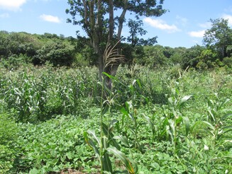 Mit eigen gezogenen Setzlingen werden speziell die Regenwaldränder aufgeforstetDAF Trainer beraten die Landwirte auf den ParzelleDie Landwirte haben bereits nach kurzer Zeit eine lohnende ErnteEine Parzelle vor der BepflanzungDer Hochlandregenwald in Ankafobe geht verloren