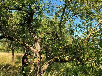 Aufwand: Für die gesamte Saison müssen Sie ungefähr 3-4 halbe Tage Arbeitsaufwand einplanen. Ein Nachmittag Einführung bei der Streuobstaktion, ein halber Tag Baumpflege, ein bis zwei Ernten.