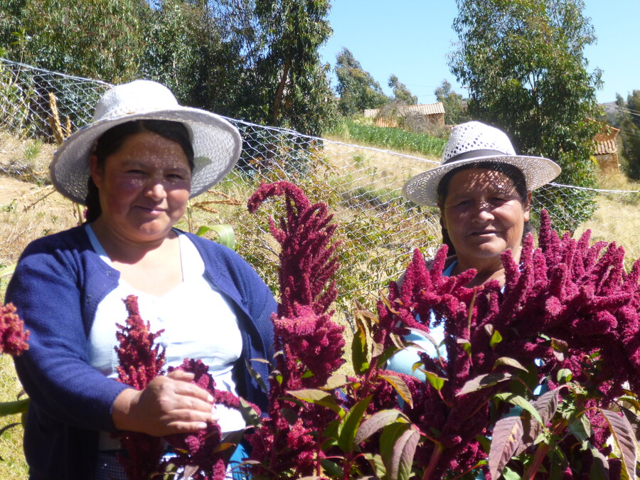 Ambas están viviendo una nueva práctica, en la que están interactuando con nuevas especies y entendiendo a la naturaleza de otra manera. Dentro de las nuevas especies que más le llaman la atención a doña Calixta se encuentra el amaranto. Ella explica que es la primera vez que pueden producir este grano andino de gran valor nutricional. Se llena de orgullo al contar que muchos y muchas visitantes se impresionan con el amaranto y piden comprarle semilla.