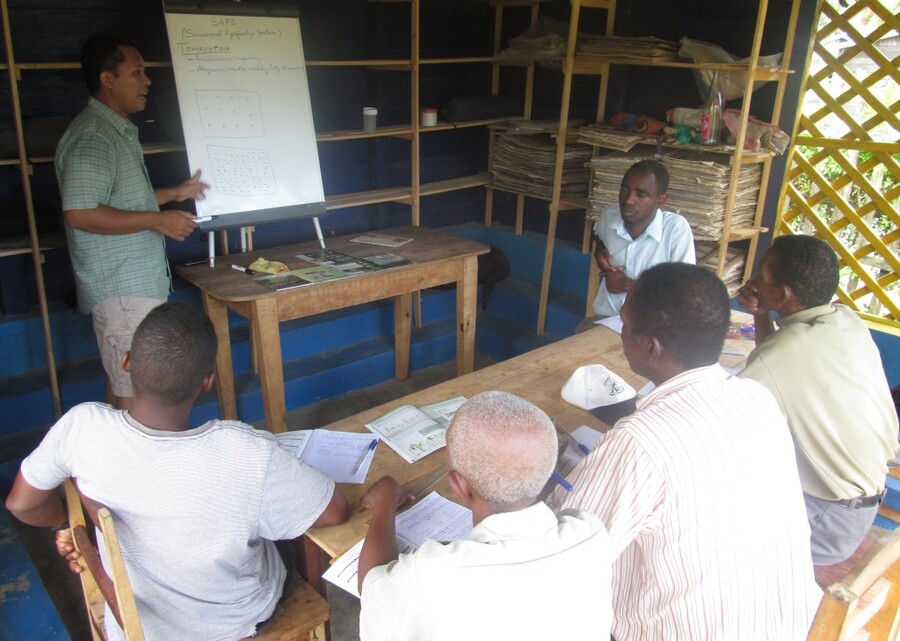 En el 2014 comenzamos un nuevo proyecto y un nuevo sueño en Madagascar: queremos implementar allá la agroforestería dinámica, para que ofrezca alimentos en abundancia a los habitantes así como también un espacio de vida para las diferentes especies, de una manera similar a como lo hace el bosque natural. Para ello enviamos a Jeremie Razafitsalama (Jimmy), director de proyectos de nuestro socio Missouri Botanical Garden (MBG), para entrenarse en Bolivia y para organizar la enseñanza de los campesinos en Madagascar. Viaje de Madagascar al Bolivia
