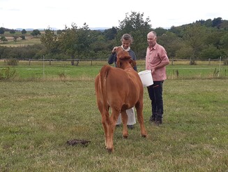 Rind wird per Hand gefüttert