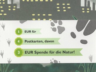 Los estudiantes del curso de ilustración de la Academia de Diseño diseñaron postales para Naturefund durante el semestre de verano de 2013. Hemos elegido cuatro de los más bellos motivos. La elección fue muy difícil para nosotros porque había muchos grandes diseños. Ahora puedes conseguir 4 postales por 5 euros, de los cuales 3 euros son para la naturaleza.