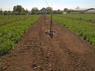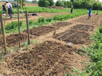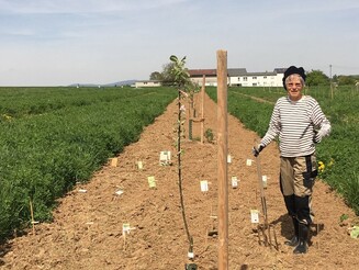 En nuestro campo de pruebas en el terreno de Hof Erbenheim en Wiesbaden, hemos creado las primeras parcelas. Queremos usar diferentes composiciones de plantas para investigar los efectos de la agroforestería dinámica con más detalle.