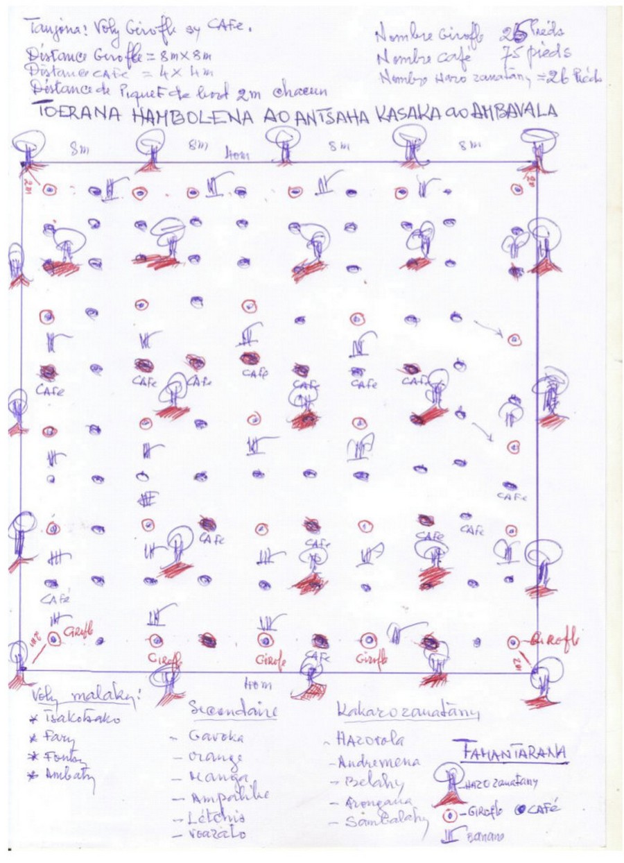En 2014, iniciamos un nuevo proyecto en Madagascar con un sueño en mente: queremos establecer allí una agroforestería dinámica que dé lugar a una granja forestal natural, que proporcionará a la población alimentos en abundancia y, al mismo tiempo, creará un hábitat para la diversidad de especies. Con este fin, enviamos a Jeremie Razafitsalama (Jimmy para abreviar), director de proyecto de nuestro socio el Jardín Botánico de Missouri (MBG), a Bolivia para que recibiera más capacitación y organizamos la formación de los agricultores en Madagascar.