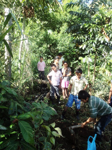 Fotos de la construcción de un pequeño vivero en el pueblo de Valencia, en medio del Parque Nacional de Patuca.