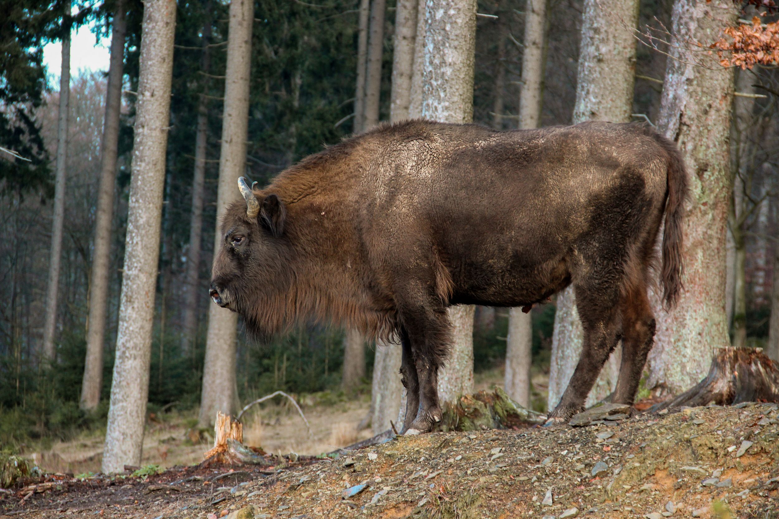 El bisonte es un animal grande, que sin embargo parecía muy pacífico y absolutamente no amenazador para nosotros durante nuestra visita. Todo el rebaño nos miraba con curiosidad, pero no se dejaban molestar. En el Rothaarsteig, cerca de Bad Berleburg, esta manada vive en libertad.