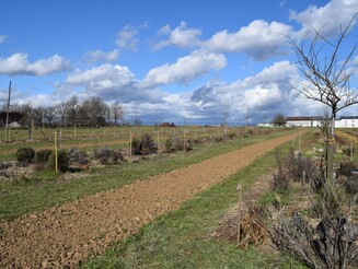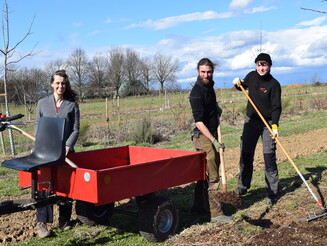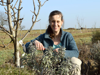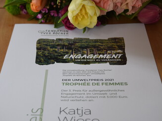 Trophée de Femmes zeichnet das Engagement für weltweite Aufforstungsprojekte ausBereits zum zweiten mal wurde Katja Wiese mit dem Umweltpreis ausgezeichnetModellfläche des Dynamischen Agroforsts in HessenDie Modellfläche wird inspiziertBei der ArbeitKatja Wiese beim Schnitt der Pflanzen