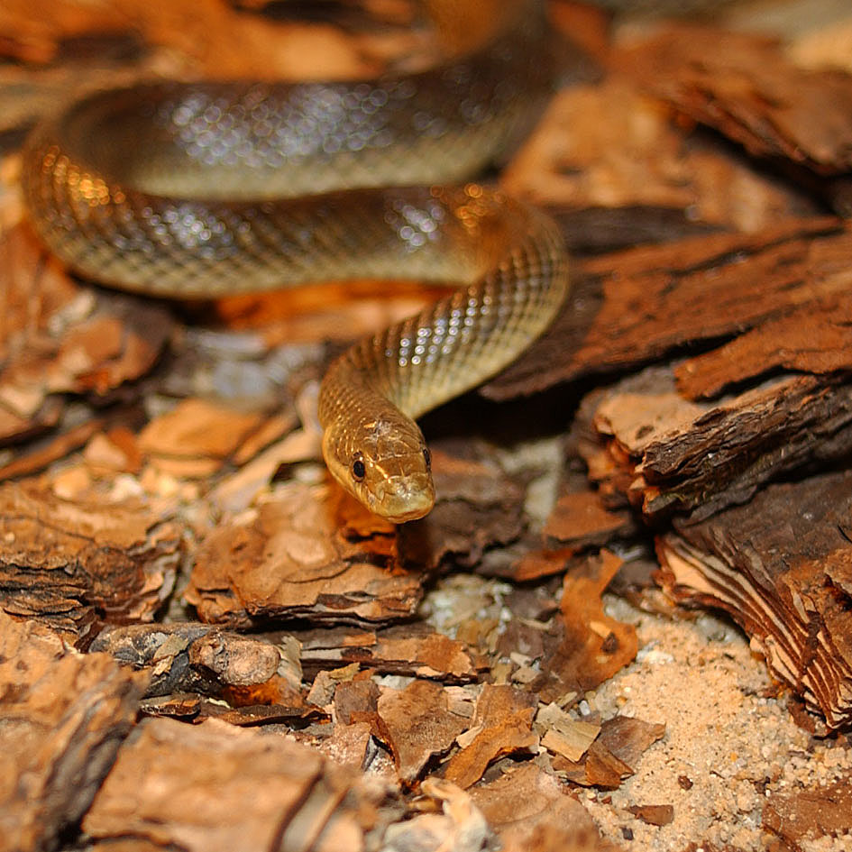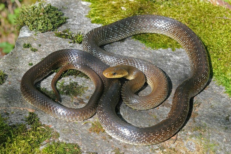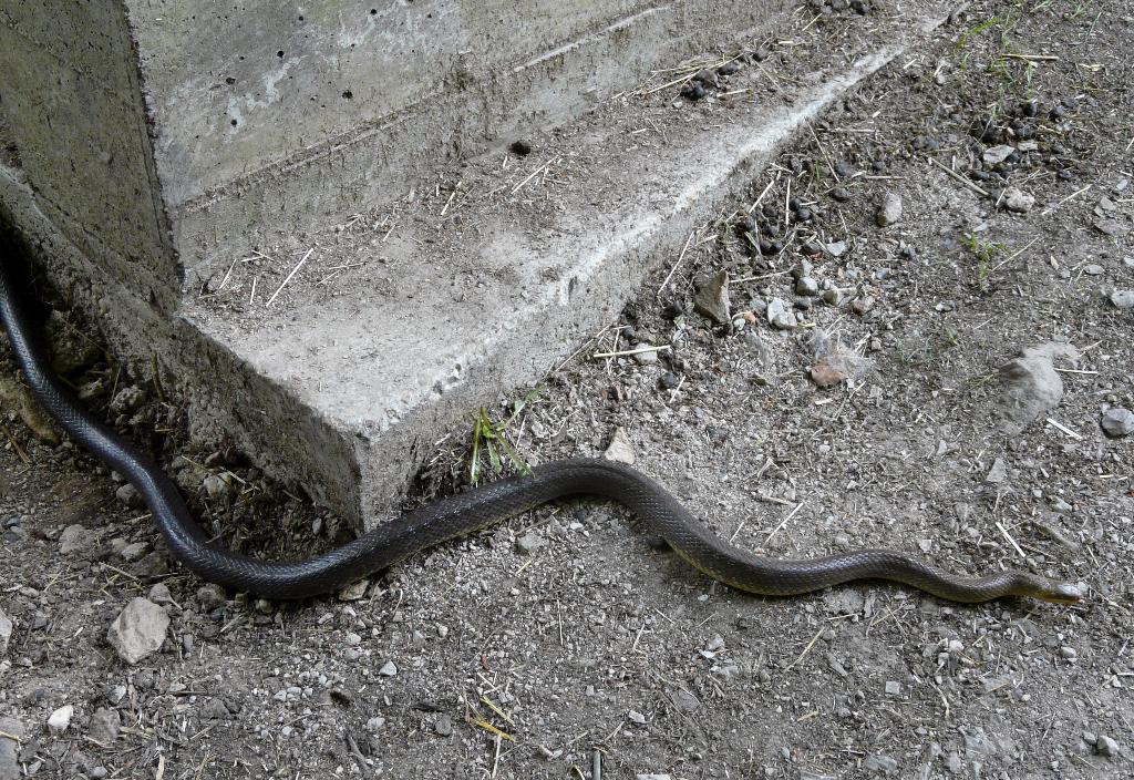 Die Äskulapnatter ist die größte Schlange Europas. Sie wird zwischen 1,20 m und 1,50 m lang und sie jagt hauptsächlich Mäuse. Für den Menschen ist sie völlig ungefährlich. Mit ihrer sehr schuppigen Haut kann sie elegant Bäume hochklettern, selbst solche mit glatter Rinde.