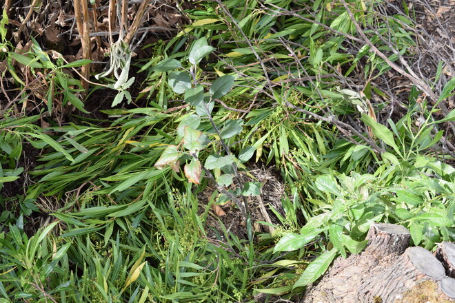 En las regiones con vientos frecuentes y violentos, los árboles jóvenes de mayor crecimiento necesitan apoyo. Estos se pegan a una distancia de unos 20 cm tanto a la derecha como a la izquierda del tronco, se clavan en el suelo y se envuelven con una banda ancha para que el tronco se mantenga en el centro de la banda. En nuestro ejemplo, la planta vecina y la biomasa alrededor del pequeño árbol proporcionan suficiente protección.