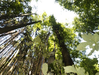 Aquí hay muchas hayas viejas, pero también se pueden ver tejos, hierba perla, arboleda, halcón de madera y dafne.