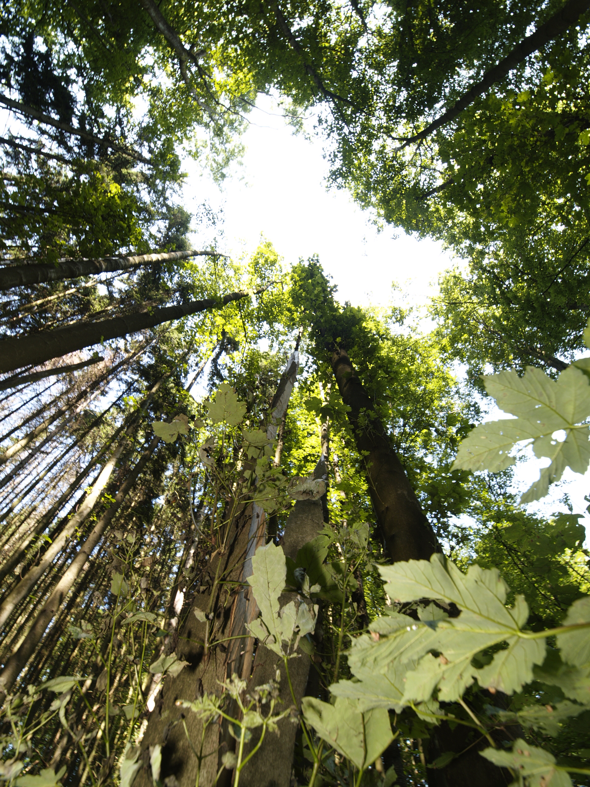 El bosque no ha sido explotado desde hace 10 años. Algunas de las hayas ya tienen 150 años - lo que no es un edad muy avanzada para este tipo de árbol, pero en Alemania los bosques han sido explotados intensamente y por eso casi no se encuentran más hayas de tal edad.