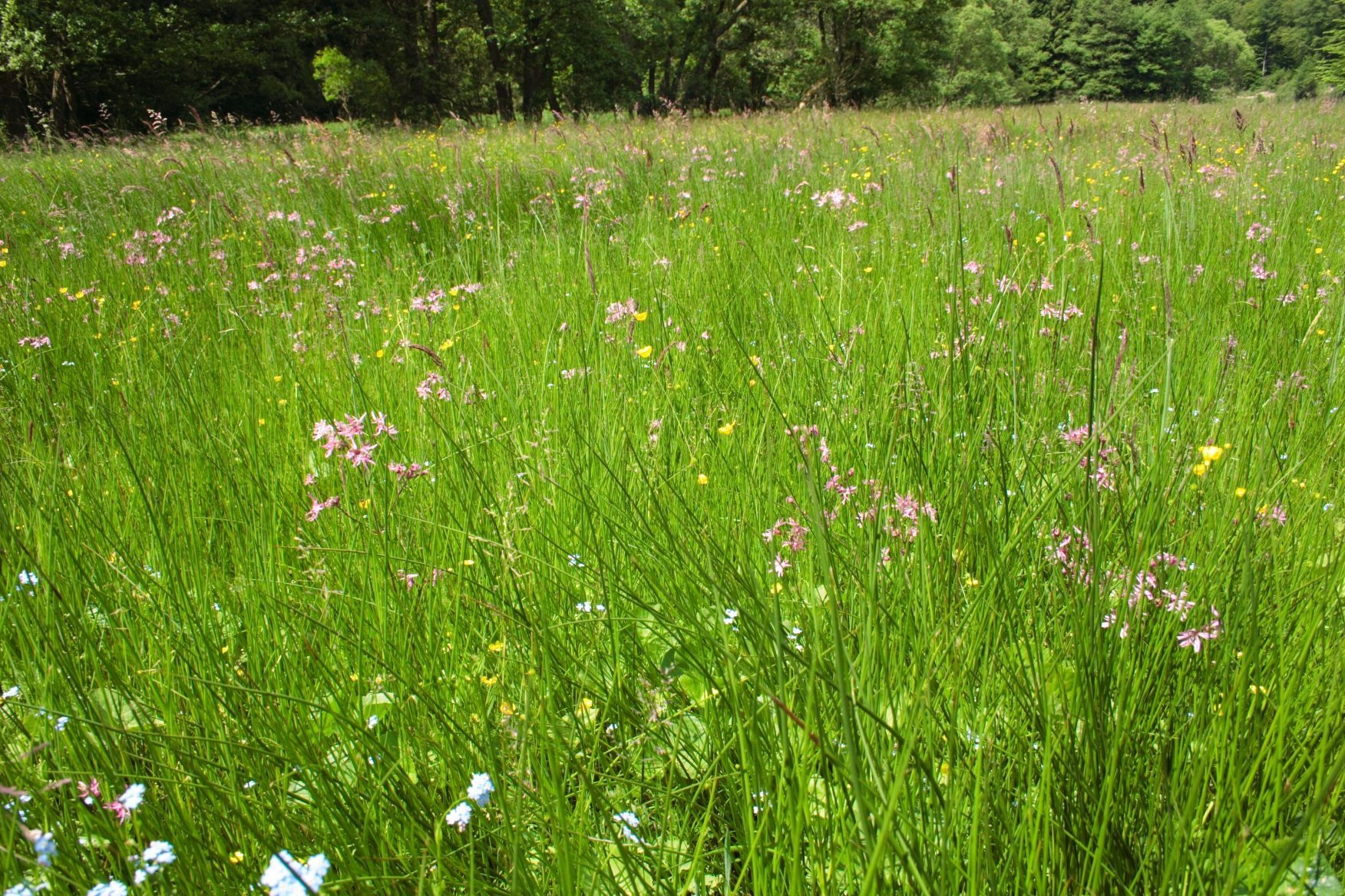 Las praderas húmedas son biotopos ricos de especies de la fauna y flora. Aquí crecen gramíneas, juncos, mandabelares y un gran número de flores. También existen raras especies de animales, como la salamandra de montaña, la salamandra helvética, el zapo y la alción (también llamado martín pescador).