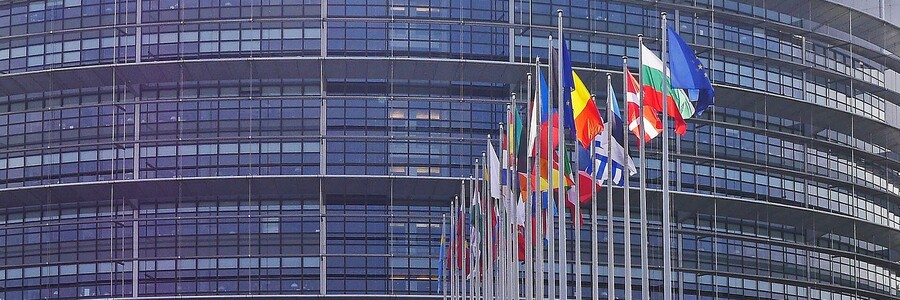 Flaggen der europäischen Ländern sind vor dem europäischen Parlament gehießt