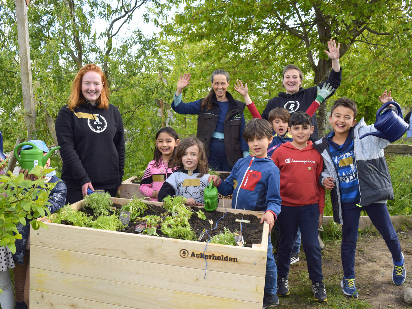 Mit leuchtenden Augen und kleinen Schaufeln in der Hand pflanzen Kinder der Friedrich-von-Schiller Grundschule ihr erstes eigenes Gemüse. Möhren, Spinat, Sauerampfer und sogar Colapflanze wandern…