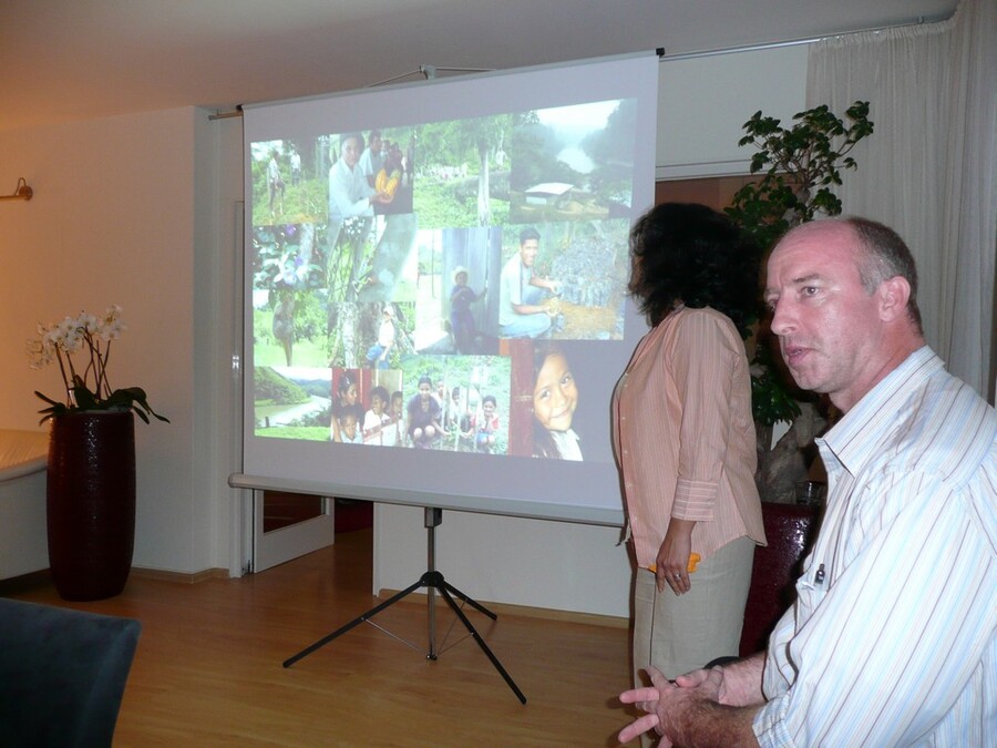 6 € kostet ein Baum, wahlweise Ceiba, Mango Insorto oder Caoba. Einen Mengenrabatt gibt es natürlich nicht, denn das Geld wird, so versichert Katja Wiese, Geschäftsführerin des fünfköpfigen Teams, zu 80 Prozent direkt in die Pflanzung investiert. Der Rest bleibt für die Organisation und Verwaltung von Deutschland aus. Fast 17000 Bäume wurden auf diese Weise bereits neu gesetzt, insgesamt sollen es 50000 werden. Wem der zentralamerikanische Staat zu weit weg ist, um die Früchte der selbsterhaltenden Großzügigkeit zu begutachten, dem steht auch der schrittweise Ankauf einer knapp 8000 Quadratmeter großen Streuobstwiese zur Auswahl. Dort, so Naturefund, befinden sich 'alte, knorrige Obstbäume', seltene Schmetterlinge und brütende Uhus. Gemeinsam mit der Hessischen Gesellschaft für Ornithologie und Naturschutz will der Verein das Gelände kaufen, um es 'dauerhaft für die Natur zu sichern'. Vier Quadratmeter sind für 5 € zu haben, bislang wurden auf diese Weise immerhin 812 Quadratmeter gesichert. Vor fünf Jahren ist der Verein, der mittlerweile 250 Mitglieder hat, an die Öffentlichkeit gegangen, vor drei Jahren wurde das erste Projekt ins Leben gerufen und auch gleich ein Werbespot dafür erstellt. Das Projekt in Honduras ist nun das erste Auslands-Engagement von Naturefund und läuft seit mittlerweile zwei Jahren. Das deutsch-hondurische Ehepaar Hauke Hoops und Claudia Lagos war nun zum ersten Mal in Wiesbaden zu Besuch, um den Organisatoren, Paten und Interessierten persönlich Auskunft über den Sachstand zu geben. Vor zwölf Jahren haben sie das Vorhaben mit einer anderen Organisation aufgebaut, bevor sie 2001 die 'Asociación Patuca' gegründet haben, die mittlerweile mit einem nationalen Umweltpreis ausgezeichnet und mit der Organisation des Nationalparks im Regenwald beauftragt wurde. Noch immer liegt die Abholzungsrate in dem Gebiet bei fünf Prozent. Zu hoch, um einen dauerhaften Bestand zu sichern, so die Aktivisten. "Wenn die Asociación nicht wäre, läge der Anteil aber noch höher", glaubt Katja Wiese. Holz ist eine wichtige Einnahmequelle für die Bewohner, darum betreiben noch immer viele Menschen Raubbau an ihrem eigenen Lebensraum. Nach und nach werden den Menschen alternative Möglichkeiten des Broterwerbs näher gebracht, viele Dörfer unterstützen die Bemühungen schon heute. Bald soll mit ihnen gemeinsam eine Baumschule eingerichtet und gepflegt werden. 'Leer-Raum für die Natur schaffen', das ist es, was das Engagement zwischen hessischer Streuobstwiese und hondurischem Regenwald verbindet. Dann setzen die Naturschützer auf die 'selbstheilenden Kräfte der Natur'. Denn die erworbenen Gebiete sollen nicht bewirtschaftet werden, sondern ohne jeden Eingriff des Menschen wieder zu natürlichem Lebensraum für Tiere und Pflanzen werden. Der Kreis der Engagierten lasse sich kaum griffig beschreiben, betont Katja Wiese. Sie entstammten aus allen Bereichen des Lebens, Menschen jeden Alters und Ausbildung kommen zu Naturefund. "Sie verbindet die Betroffenheit über das, was geschieht und der Wunsch, etwas zu tun", sagt sie. Auch Firmen haben sich mit Patenschaften oder als Mitglied angeschlossen. Dort sei der Wunsch ebenfalls häufig groß, 'etwas zu verändern'. Direkt zum aktuellen Aufforstungs-Projekt
