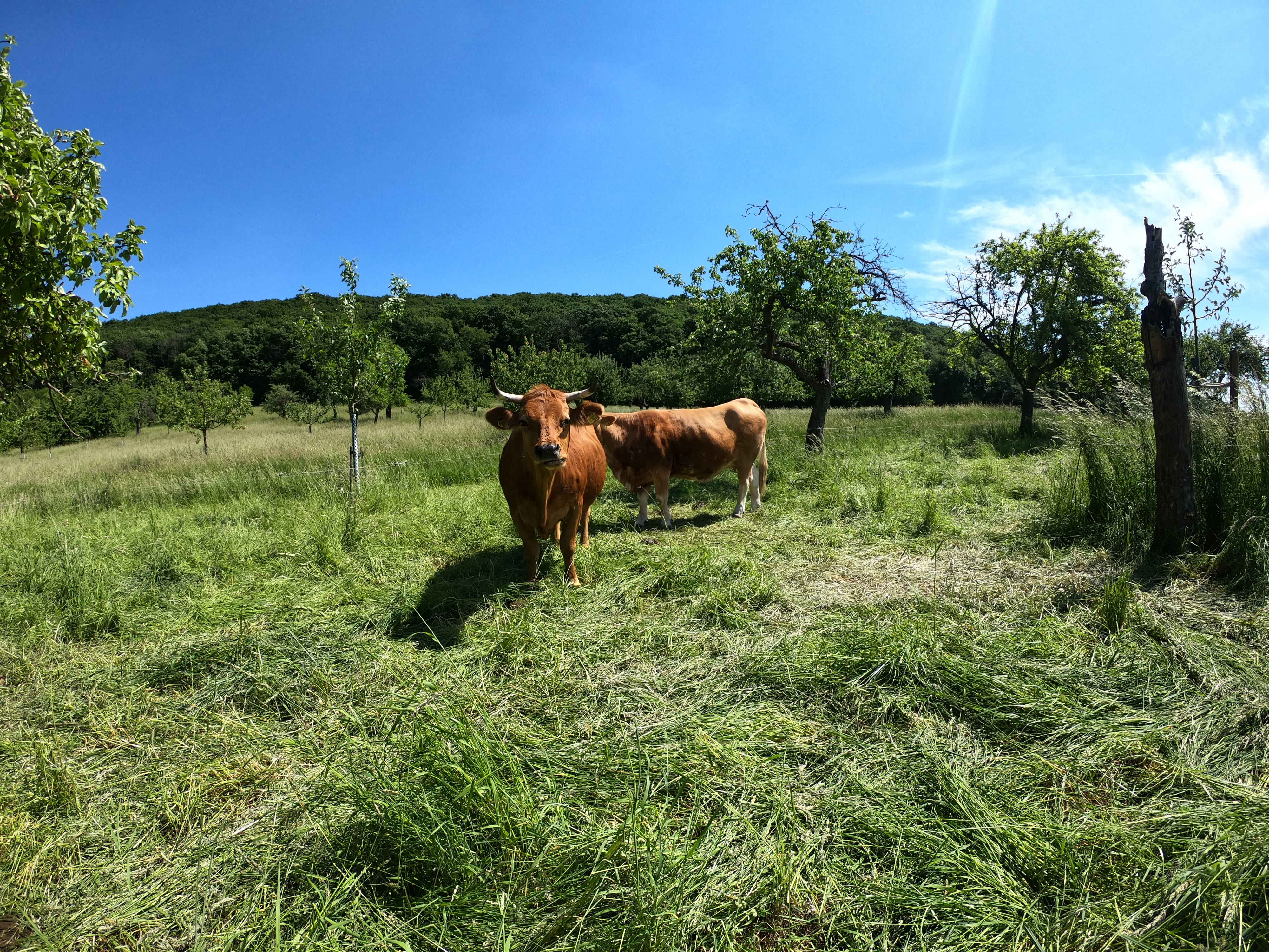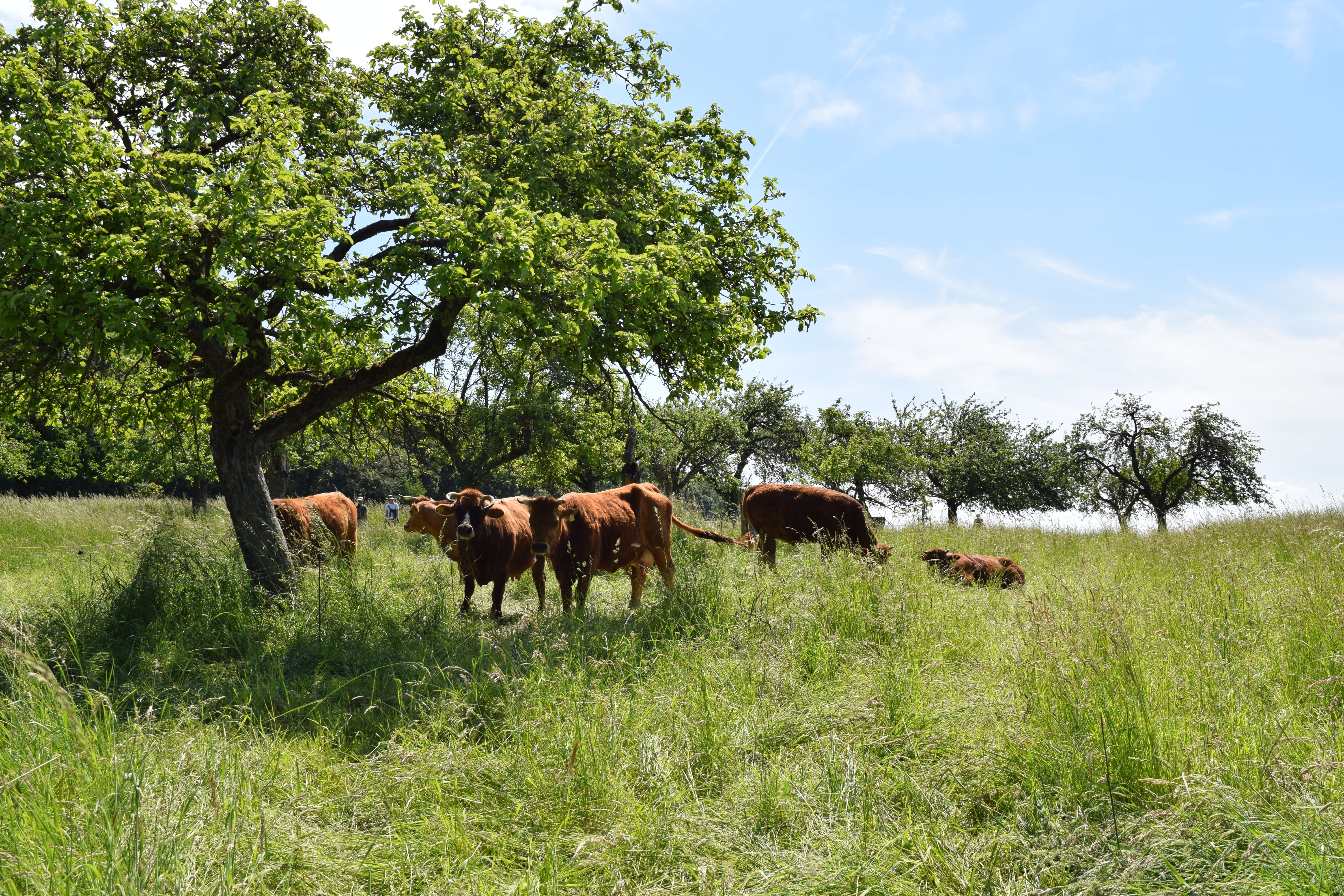 Kuhherde auf einer der vielzähligen beweideten Streuobstwiese