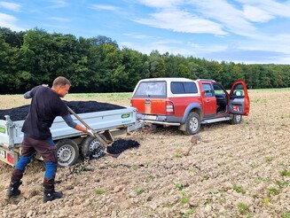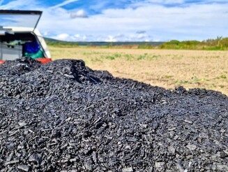 Pflanzenkohle entsteht in der Pyrolyseanlage von Carbo Force. Bei der Verkohlung von Biomasse entsteht dabei Wärme, optional auch Strom und Pflanzenkohle.Naturefund nutzt die Pflanzenkohle als Beigabe für den Boden auf Ackerflächen. So sollen langfristig fruchtbare, humusreiche Böden entstehen.Die Pflanzenkohle wird mit Wasser, Kuhmist und Kompost für einen Tag imprägniert.Ziel ist, dass die Pflanzenkohle einen feuchten Biofilm erhält - der Hauptlebensraum von Mikroorganismen.Die imprägnierte Pflanzenkohle soll zu einem guten Pflanzenwachstum beitragen und die Pflanzengesundheit verbessern. Die imprägnierte Pflanzenkohle wird von Naturefund Mitarbeitern auf einem Acker in Wiesbaden Naurod großflächig ausgebracht.Diese soll den Boden fruchtbarer machen und zudem den Kohlenstoff langfristig im Boden speichernPflanzenkohle auf der AckerflächeDas Projekt wird gefördert von der Deutschen Postcode Lotterie