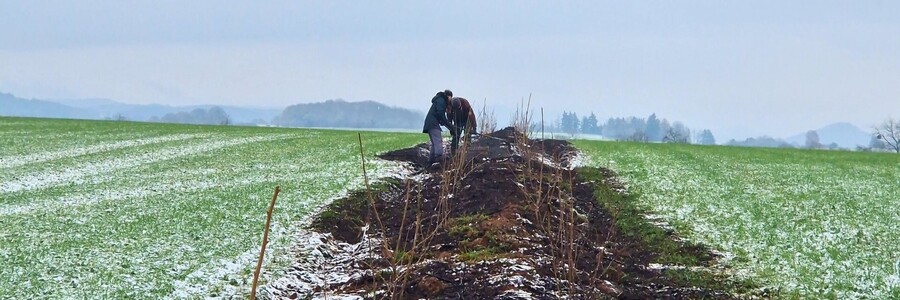 Daneben wurden Stecklinge von schnell wachsenden Gehölzen in den Boden gebracht: