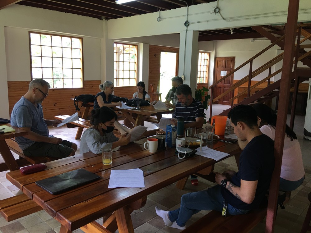 So kam Prof. Oscar E. Quiros mit drei seiner Studentinnen und zwei Mitarbeiter der Green Industry Group, die hier für ein deutsches Unternehmen einen Klimaschutzbeitrag leisten und wieder aufforsten, da wo doch kein Regenwald mehr steht, um Naturefund CR zu gründen. Zuerst haben wir uns ein wenig mit Naturefund im Allgemeinen und mit ein paar von unseren Werkzeugen beschäftigt, die evtl. auch hier eingesetzt werden können, z. B. mit dem Dynamische Agroforst. Dann ging es jedoch vor allem um das große Regenwaldgebiet, dass wir schützen wollten. Schließlich haben wir zusammen die Satzung von Naturefund CR gelesen, den einen oder anderen Fehler oder eine bessere Formulierung entdeckt und schließlich die Satzung unterzeichnet. Jetzt beginnt der lange Weg durch die Behörden, bis dann in hoffentlich in nicht allzu langer Zeit die Anerkennung von Naturefund offiziell in Costa Rica erfolgt. Wir freuen uns!