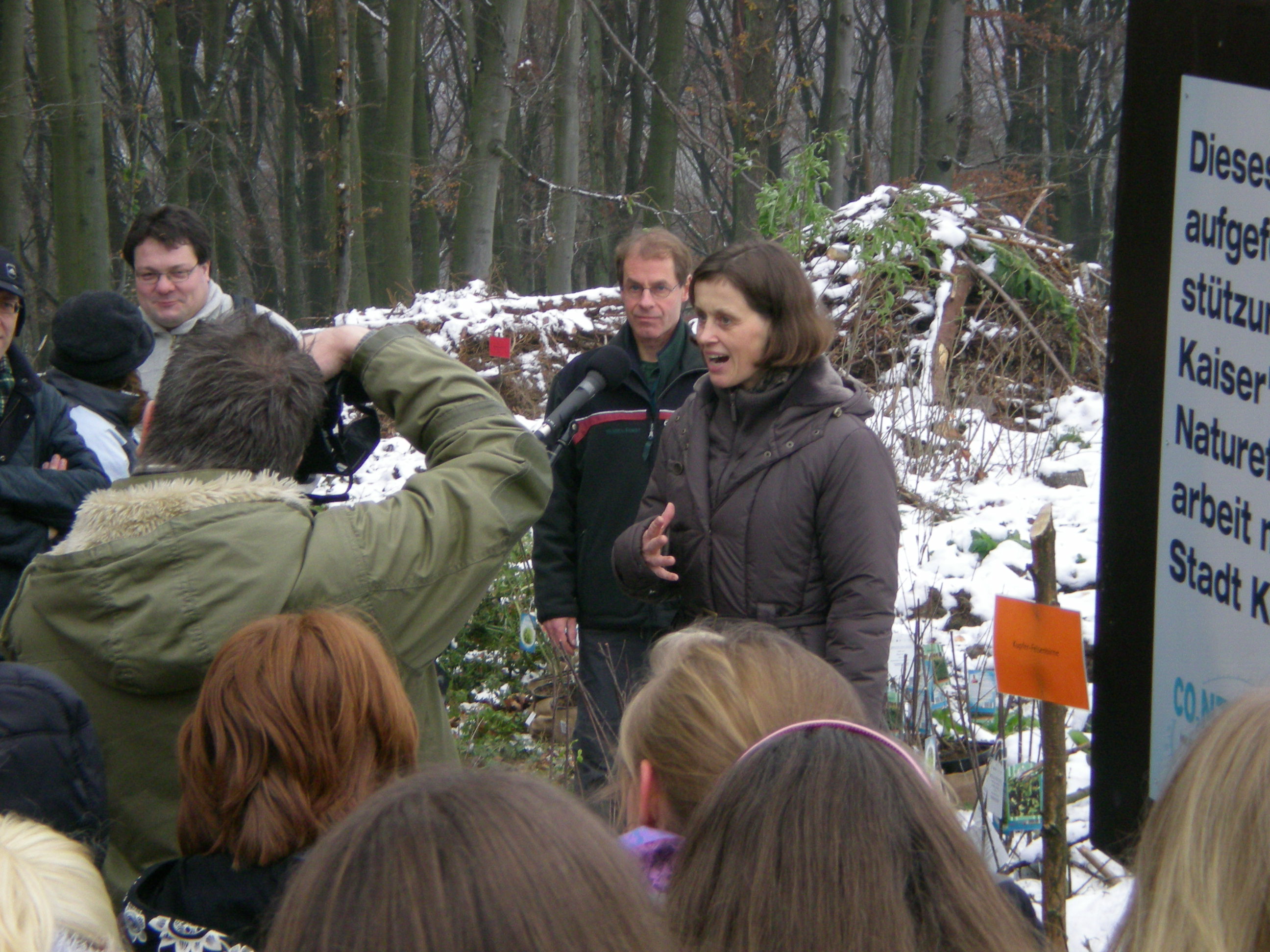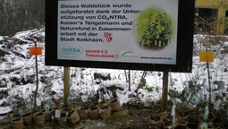 Bei Schnee und Eis wurde zusammen mit der Stadt Kelkheim, Kaiser's Tengelmann, einer Schulklasse der nahegelegenen Eichendorffschule sowie zahlreichen naturbegeisterten Menschen und gestärkt von heißem Apfelwein, Apfelsaft und Brezeln, wieder aufgeforstet.
