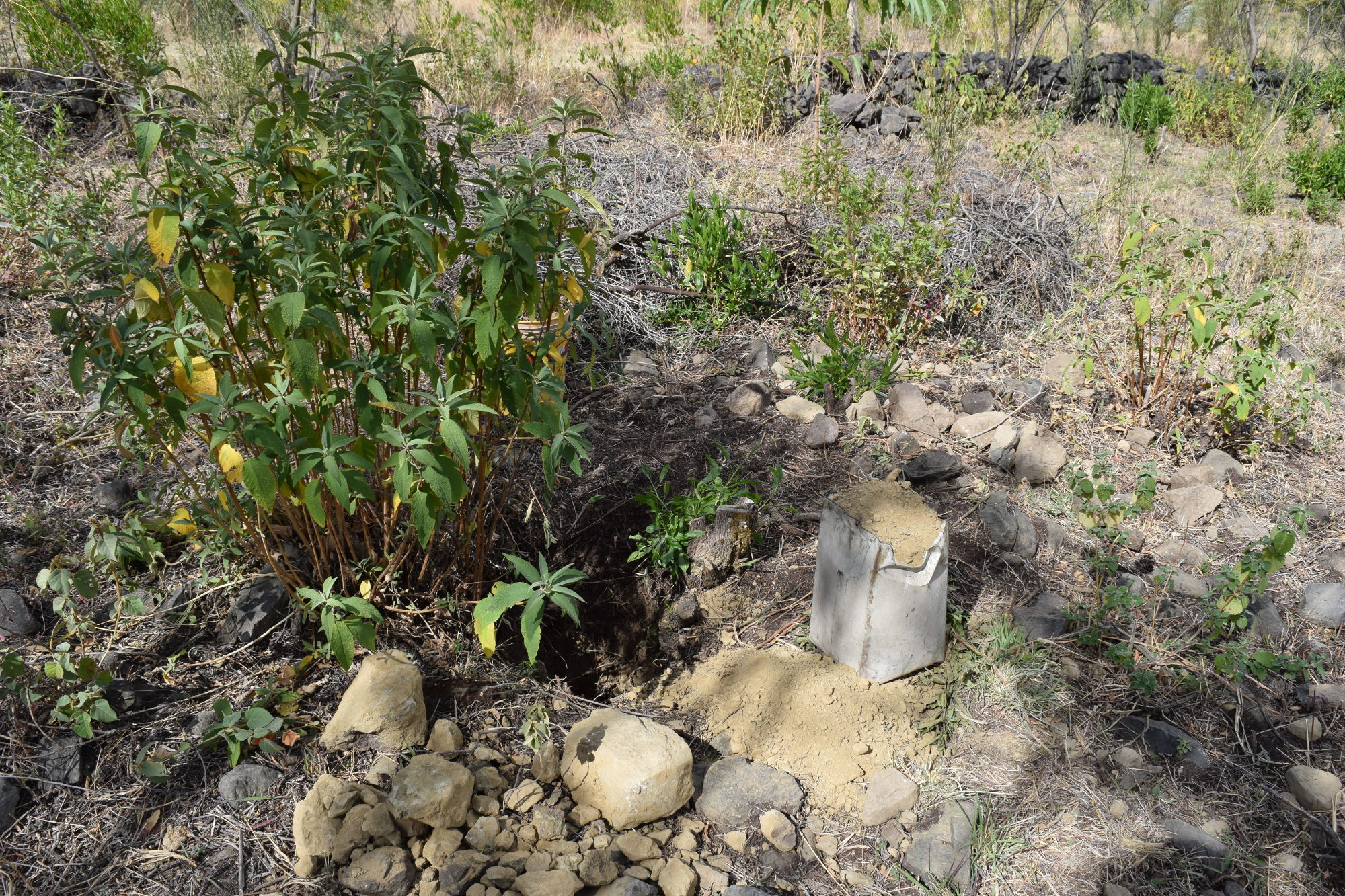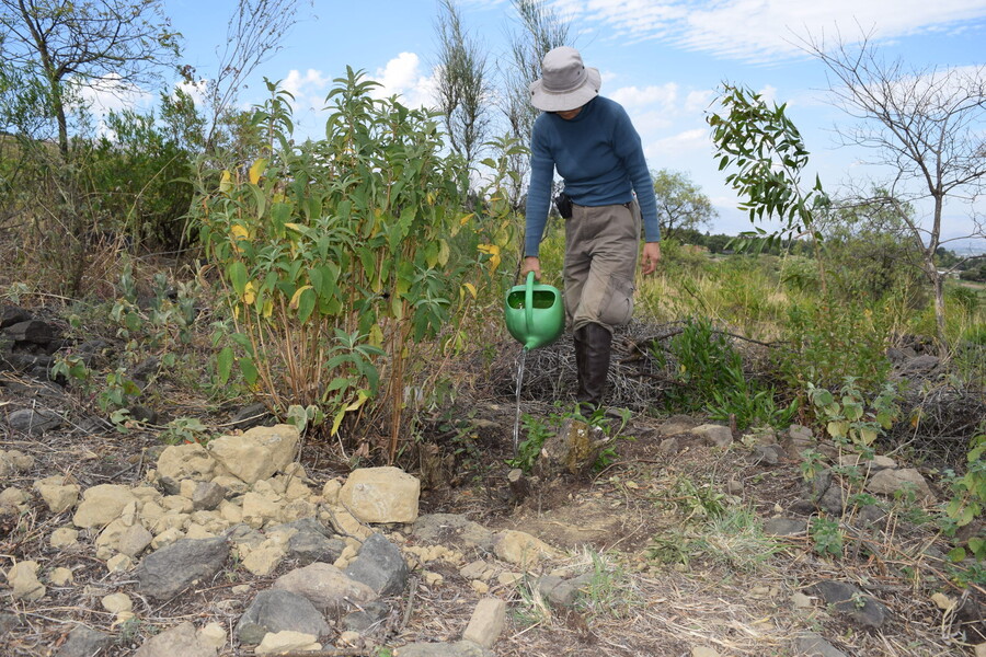 Das frisch gepflanzte Pflänzchen braucht nun Wasser. Das Gießwasser wird dabei langsam in den Ring um die Pflanze gegeben. Wir empfehlen mindestens eine Gießkanne Wasser, bei trockenem Wetter können es auch ruhig bis zu drei volle Gießkannen sein.