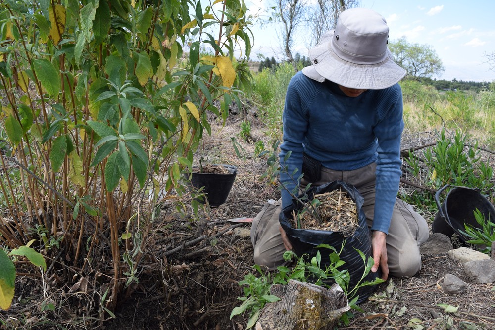 Die richtige Wahl des Standorts ist wichtig für den Start des neu gepflanzten Baumes. Wenn Sie die Möglichkeit haben, wählen Sie am besten einen Ort gleich neben einer anderen Pflanze, mit welcher der Baum harmonieren kann. Die Pflanze ist wie eine Amme, spendet dem Baum Schatten und dient als Windschutz. Auch das Wurzelumfeld profitiert, wenn viele verschiedene Pflanzen dicht beieinander wachsen. All diese Vorteile macht sich der Dynamische Agroforst zunutze und beschleunigt dadurch das Wachstum. Falls keine andere Pflanze da ist, können Sie eine oder auch mehrere schnell wachsende Pflanzen als zukünftige Ammen direkt neben dem Baumsetzling pflanzen. Falls auch das nicht geht, dann sollten Sie zumindest Mulchmaterial um den neuen Baumsetzling verteilen.