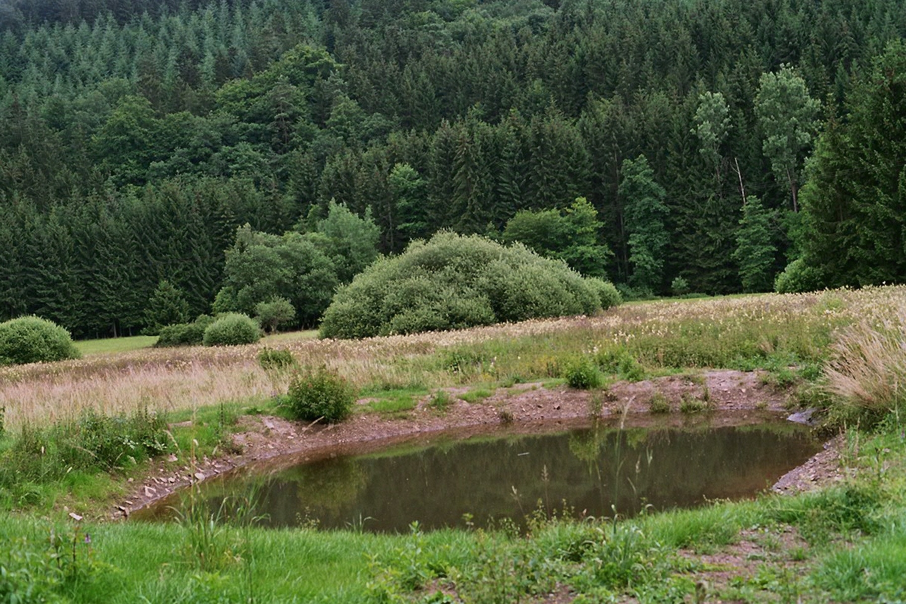 Feuchtwiesen sind artenreiche Biotope. Hier wachsen Gräser, Binsen, Seggen und zahlreiche Blumen. Seltene Arten wie Bergmolch, Fadenmolch, Erdkröte oder Eisvogel kommen hier vor.