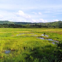 Letzte Reste Hochlandregenwald schmiegen sich in eine Senke im Schutzgebiet rund um Ankafobe auf Madagaskar