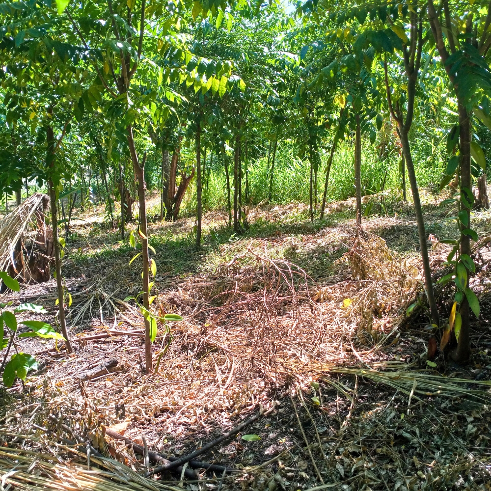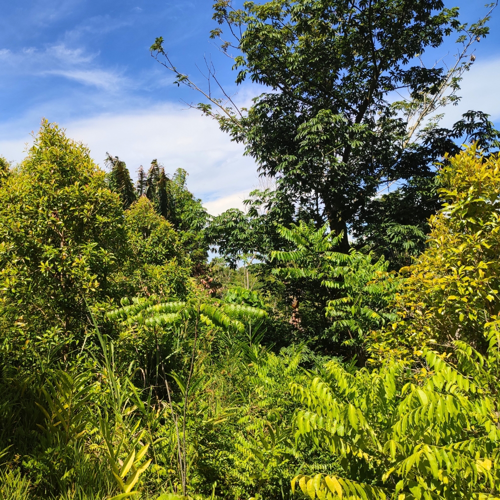 Mehrere Jahre alte, dicht bewachsene Dynamische Agroforstparzelle auf Madagaskar, bei der neben einer Vielzahl an Ackerfrüchten auch artenreich Bäume wachsen
