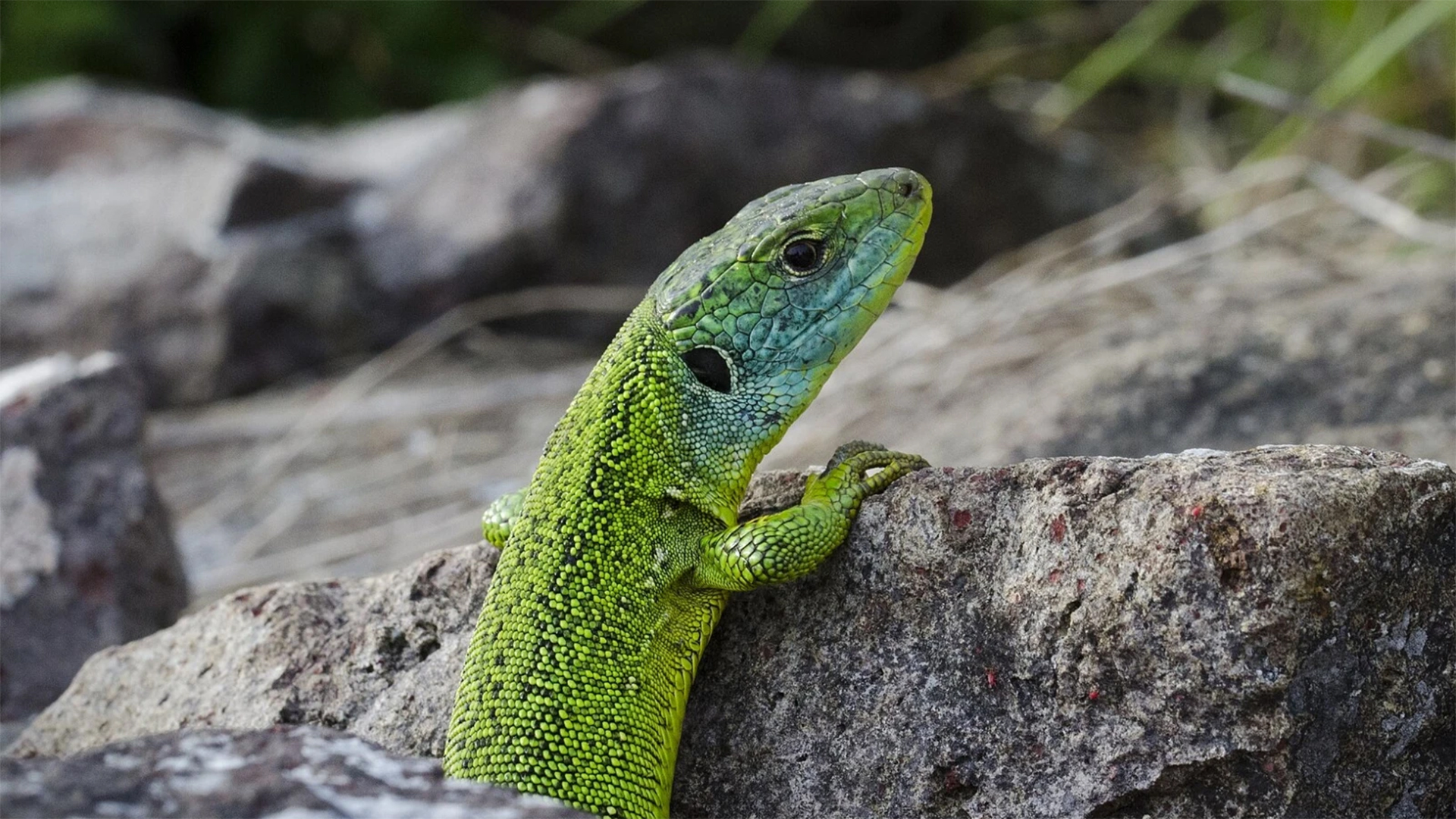 Das Obere Mittelrheintal bietet auch idealen Lebensraum für mehrere Reptilienarten. Die Smaragdeidechse und die Mauereidechse sind typische Vertreter von trocken-warmen Ökosystemen. Diese Eidechsenarten finden in den sonnenexponierten Weinbergen, Felsen und Trockenmauern geeignete Habitatstrukturen.