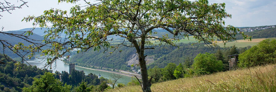 Streuobstwiesen sind bekannt als Hotspot der Biodiversität und ein prägender Teil der Kulturlandschaft. So verbreitete sich der Obstbau im Mittelrheintal Ende des 19. Jahrhunderts als wirtschaftliche Einnahmequelle, insbesondere als Nachfolgekultur des damals krisengeschüttelten Weinbaus. Die klimatische Begünstigung des Mittelrheintals führte dazu, dass großflächig wärmebedürftige Steinobstarten angebaut wurden. Alte Obstbäume benötigen jedoch Erhaltungsmaßnahmen. Auf den von uns gepflegten Flächen befinden sich alte Süßkirschbäume, die nun dank einer fachgerechten Pflege erhalten werden können. Wir planen hier junge Streuobstbäume wie Süßkirsche, Esskastanie und Birne nachzupflanzen.