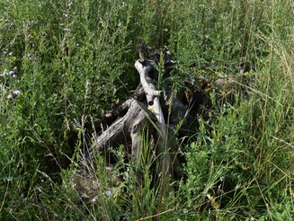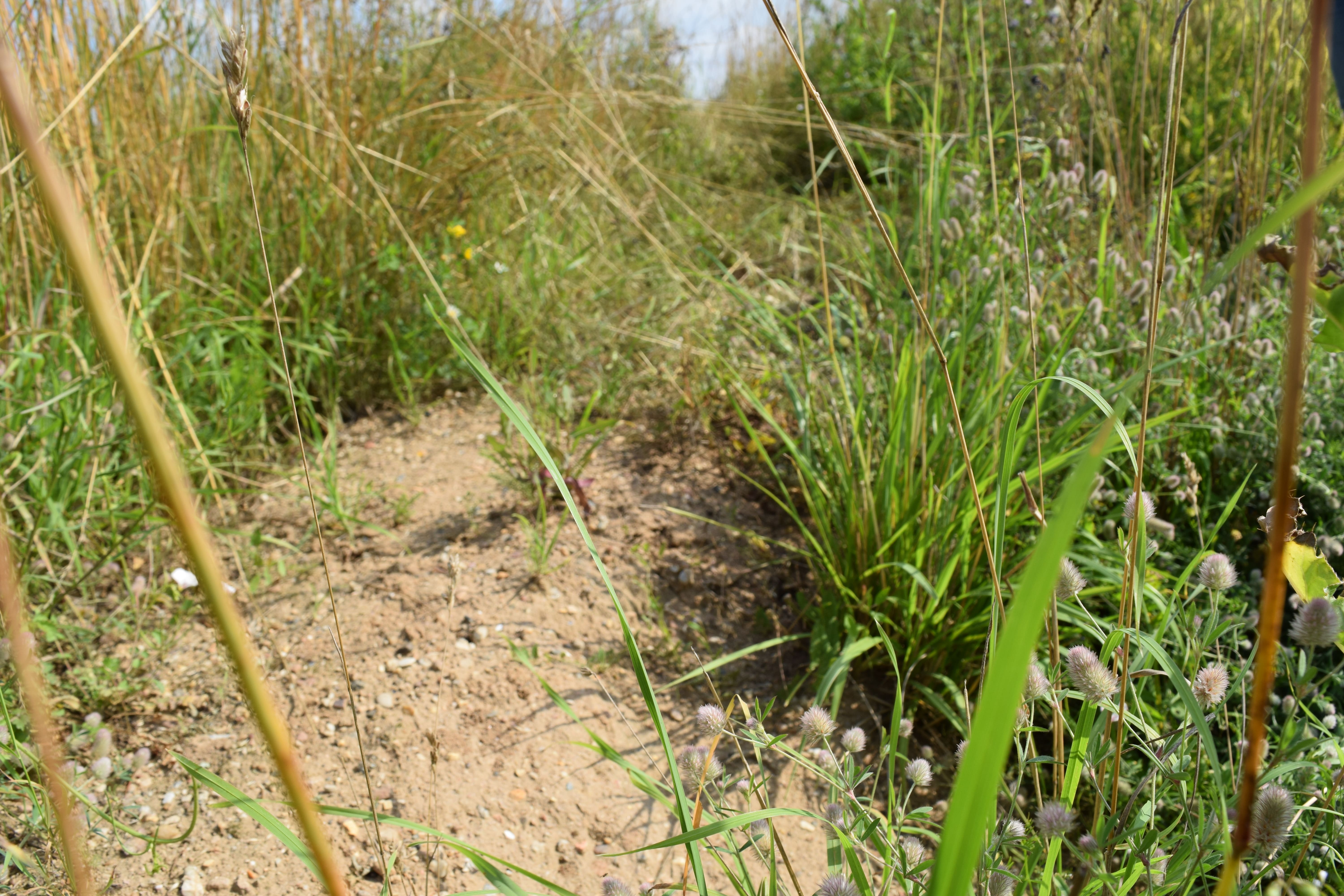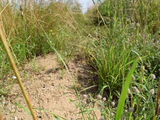 Etwa ein Drittel der Wildbienen nistet in selbst gebohrten Röhren im Offenboden. Daher haben wir bereits im Sommer 2019 Sandbänke am Rande eines Ackers aufschüttet. Diese müssen von Vegetation freigehalten werden, damit dort auch in den folgenden Jahren Sand- oder Furchenbienen nisten können. Auch senkrechte Abbruchkanten als Nistmöglichkeit für Pelz- und Seidenbienenarten und eine Trockenmauer etwa für Woll- und Blattschneiderbienen sollen den Acker zum (Wild-)Bienenparadies machen.